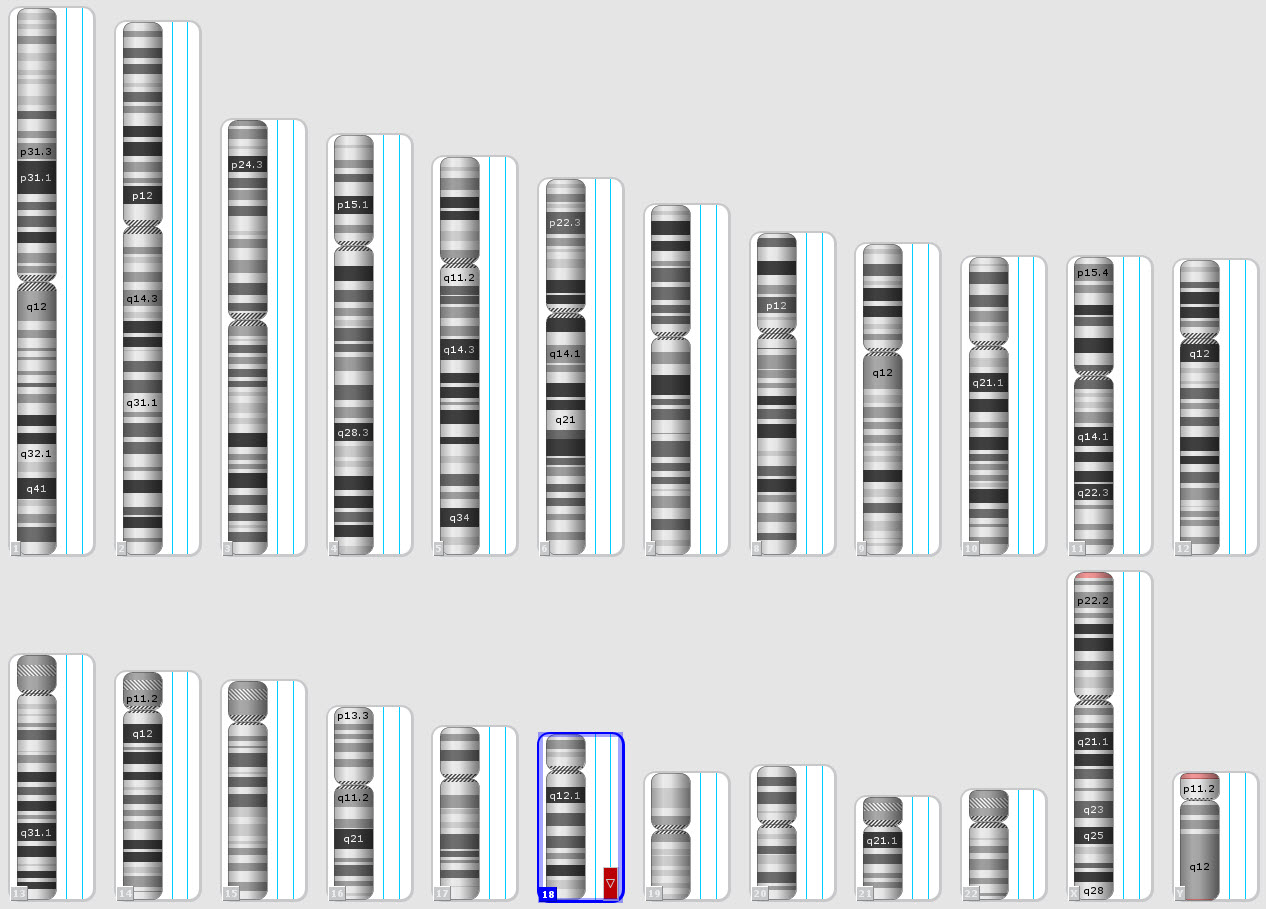 | Karyotype | 46,XX,del(18)(q22) | ||||||||||||||||||||||||||||||||||||||||||||||||