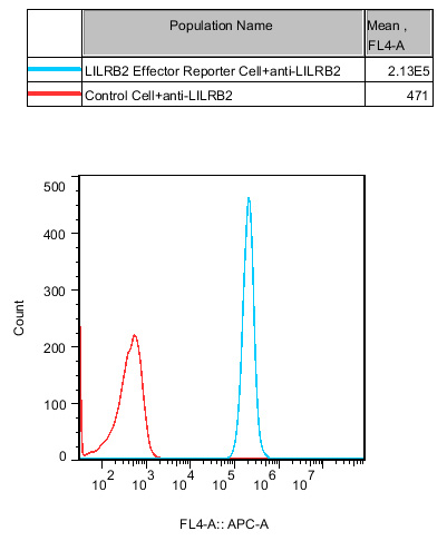 LILRB2 Effector Reporter Cell 報告基因藥靶模型很好的模擬了體內(nèi) LILRB2 的信號轉(zhuǎn)導過程,原理見下圖所示。![]() ![]() Figure 1. LILRB2 Effector Reporter Cell 模型原理圖 |