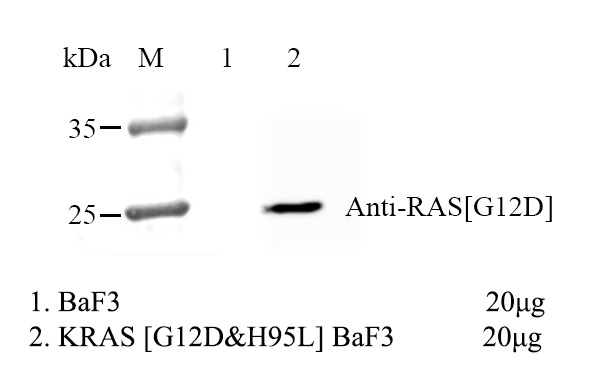 1.WB of KRAS [G12D&H95L] BaF3 Figure 2. WB of KRAS [G12D&H95L] BaF3 2.Sanger of KRAS [G12D&H95L] BaF3 |