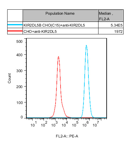 | KIR2DL5B CHO 細(xì)胞, 在 CHO-K1 細(xì)胞的基礎(chǔ)上 ,穩(wěn)定表達(dá)人 KIR2DL5B。 | |