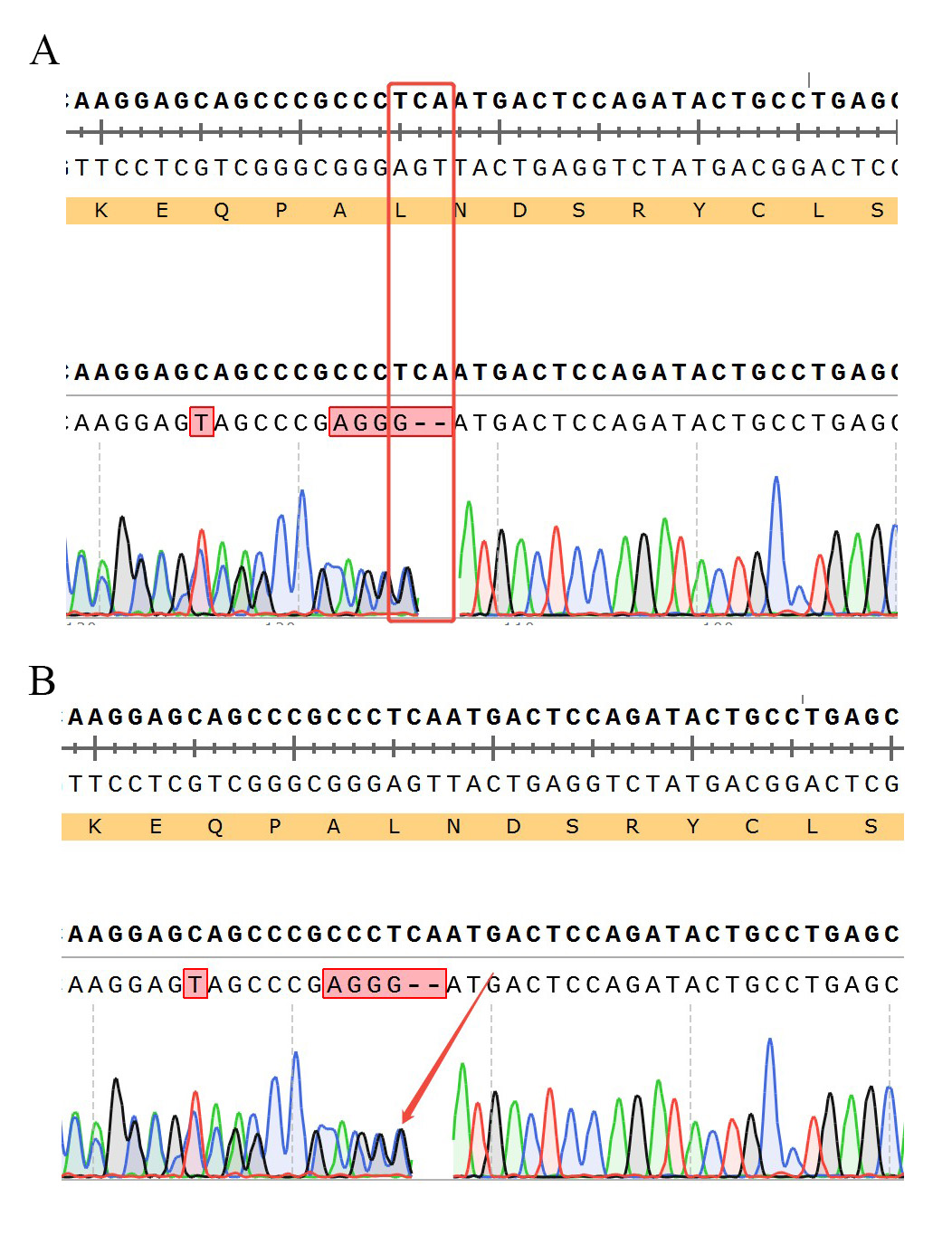 ![]() Figure 6. TRBC1 KO 的測(cè)序結(jié)果 A:chr7-142791898-TCA-C (TRBC1:p.L68Pfs*2)