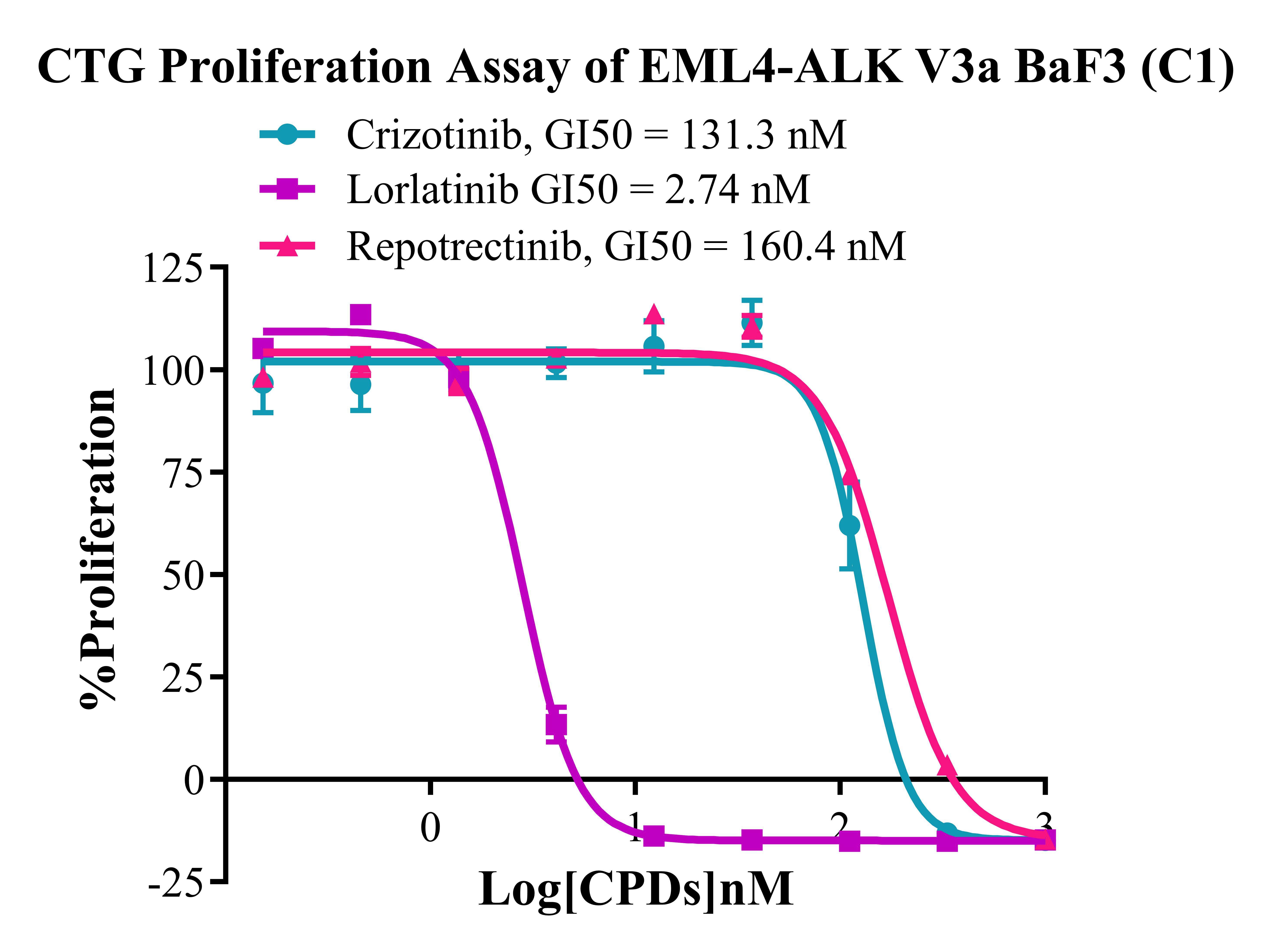 Figure 3. CTG Proliferation Assay of EML4-ALK V3a BaF3(C1). |