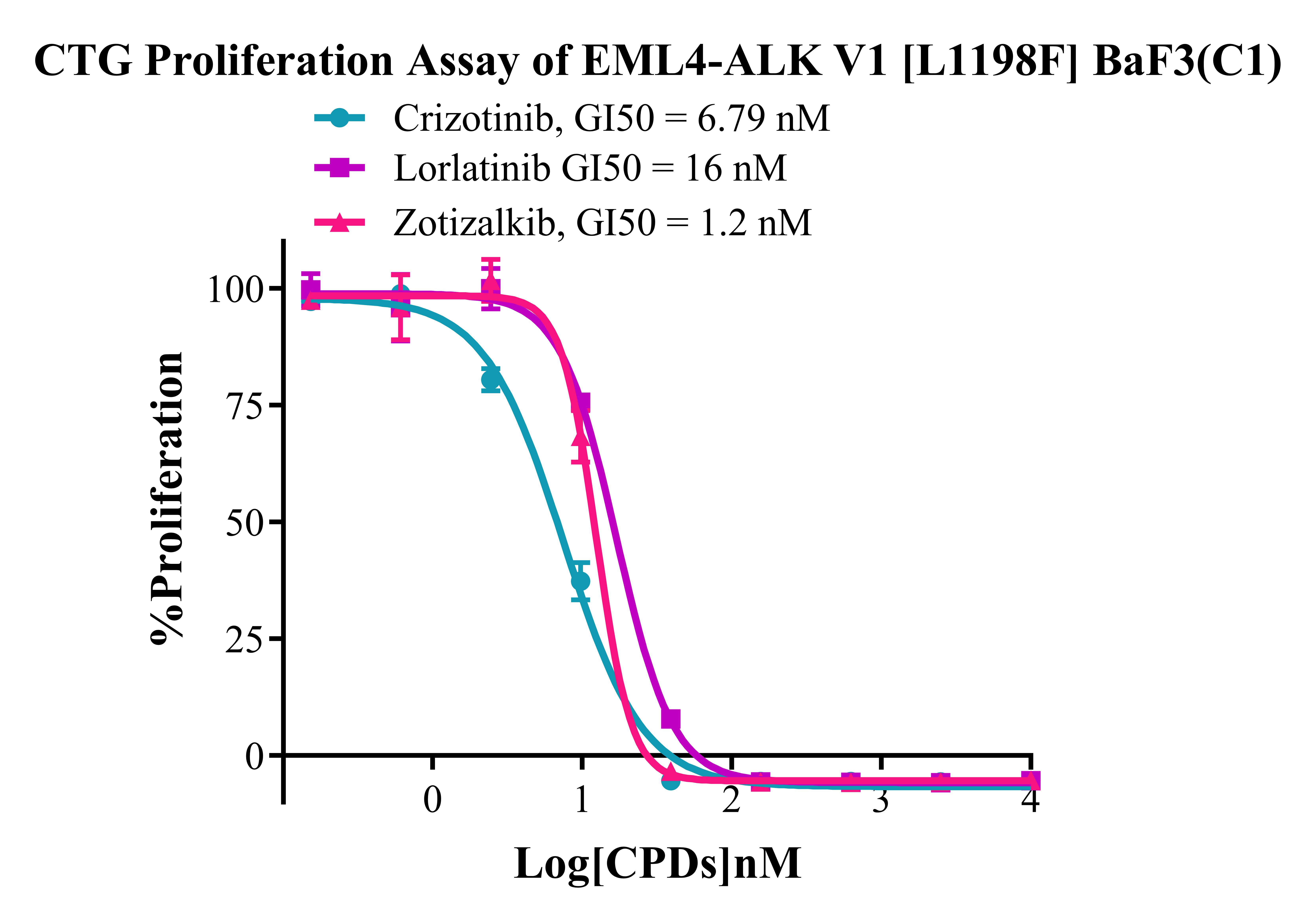 Figure 3. CTG Proliferation Assay of EML4-ALK V1 [L 1198F] BaF3(C1). |