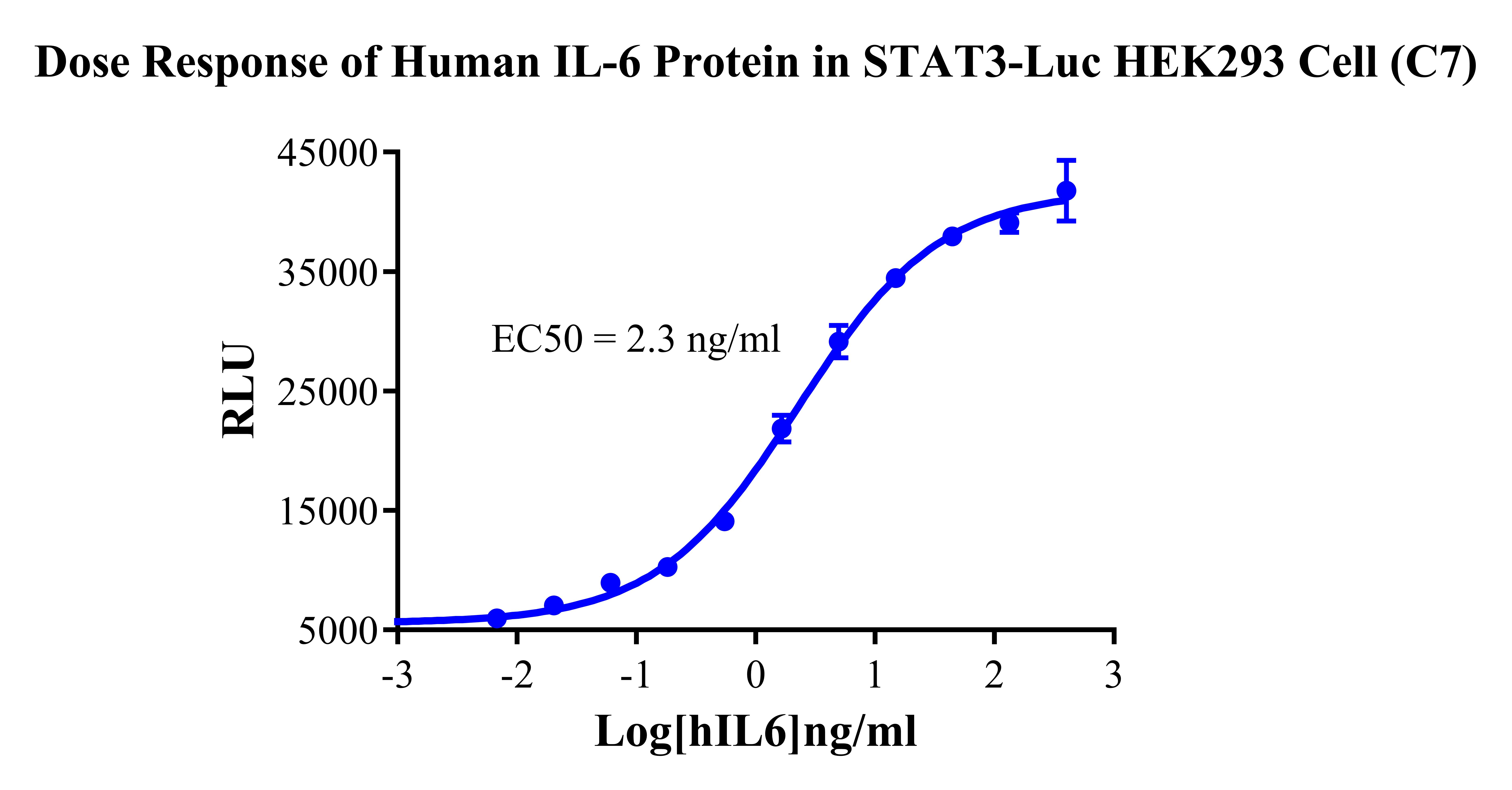Figure 2. Detect Luciferase assay by Ultra Luciferase Detection Kit CBPH0001(we strongly suggest to purchase from Cobioer). Dose Response of Human IL-6 Protein in STAT3-Luc HEK293 Cell(C7). ![]() |