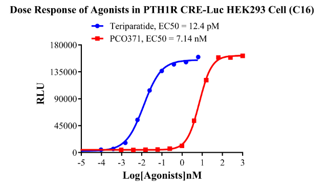CHO、PTH1R CRE-Luc HEK293和PTH1R β-Arrestin CHO細(xì)胞篩選模型,產(chǎn)品驗證結(jié)果如下: