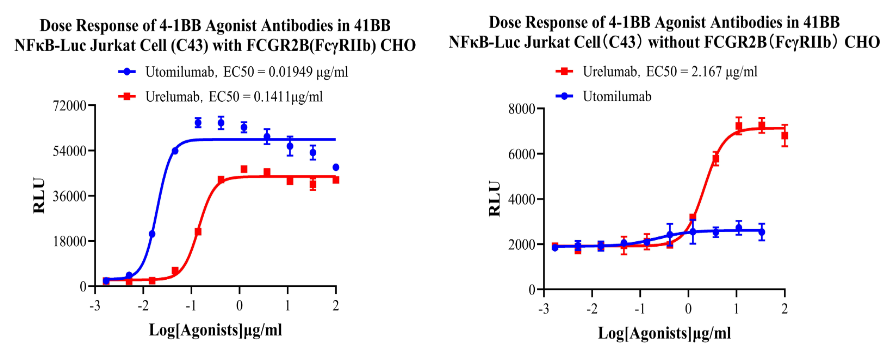 為助力4-1BB靶點(diǎn)藥物研發(fā),我們開發(fā)了41BB/CHO、41BB/HEK293、41BB/NFκB-Luc/HEK293、41BB/NFκB-Luc/Jurkat和4-1BBL CHO細(xì)胞篩選模型,產(chǎn)品驗(yàn)證結(jié)果如下: