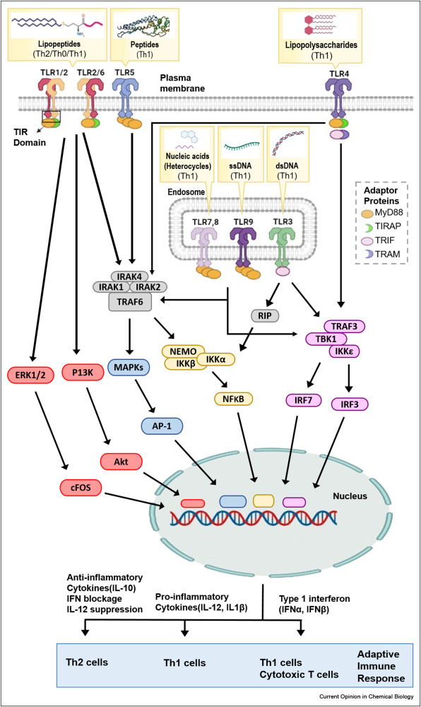 每個 TLR 都有自己特定的組織定位和下游基因信號通路,數(shù)百種靶向各種 TLR 的配體已被鑒定并表征為疫苗佐劑,這為研究人員提供了精確定制具有特定免疫作用的佐劑的機會。