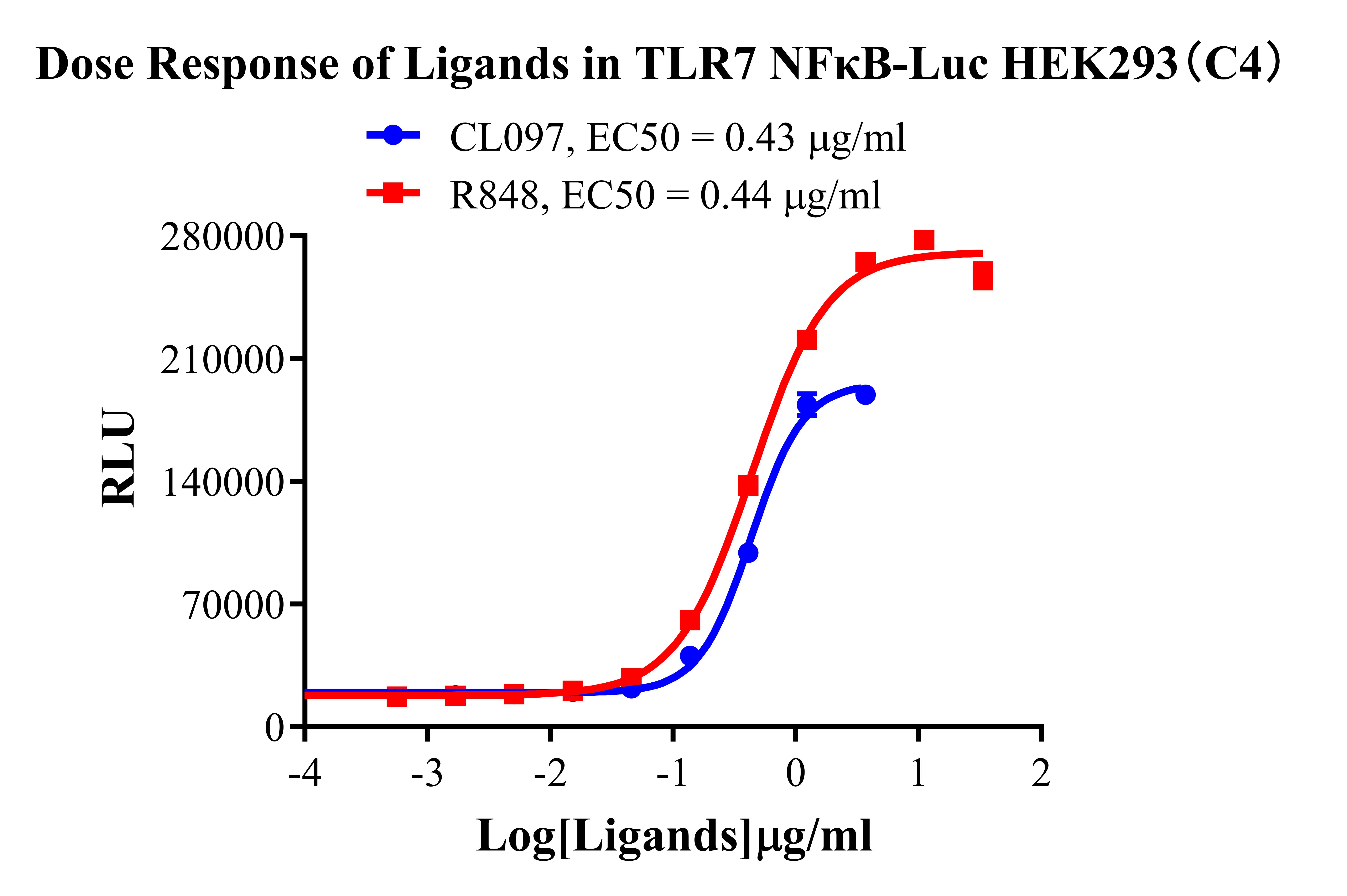 Figure 2.Detect Luciferase assay by Ultra Luciferase Detection Kit CBPH0001(we strongly suggest to purchase from Cobioer). Dose Response of  Ligands in TLR7 NFκB HEK293(C4).