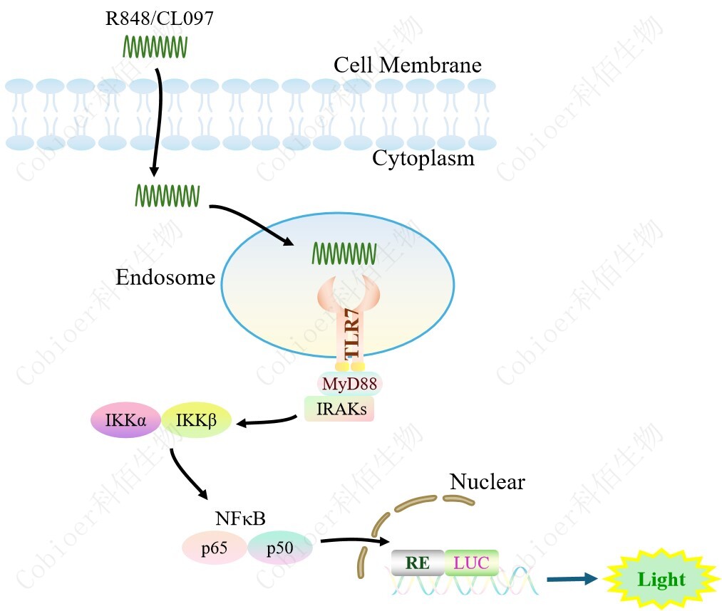 TLR7 NFκB-Luc HEK293 細(xì)胞模型原理圖