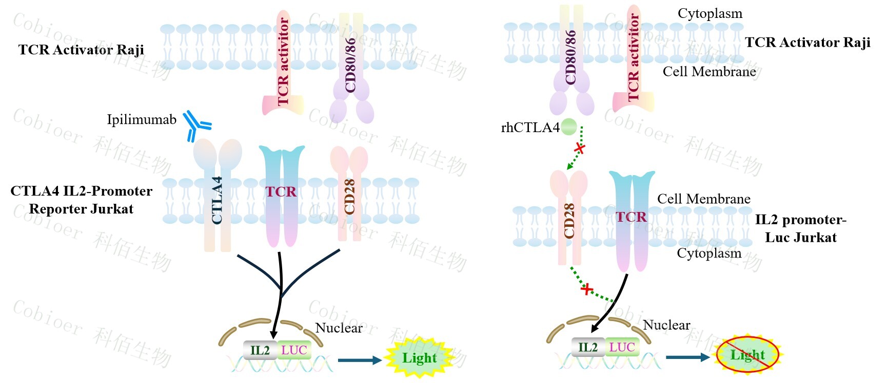 TCR Activator Raji 報告基因藥靶模型很好的模擬了體內 CD28&CD80/CD86 或者CTLA4 的信號轉導過程,原理見下圖所示。