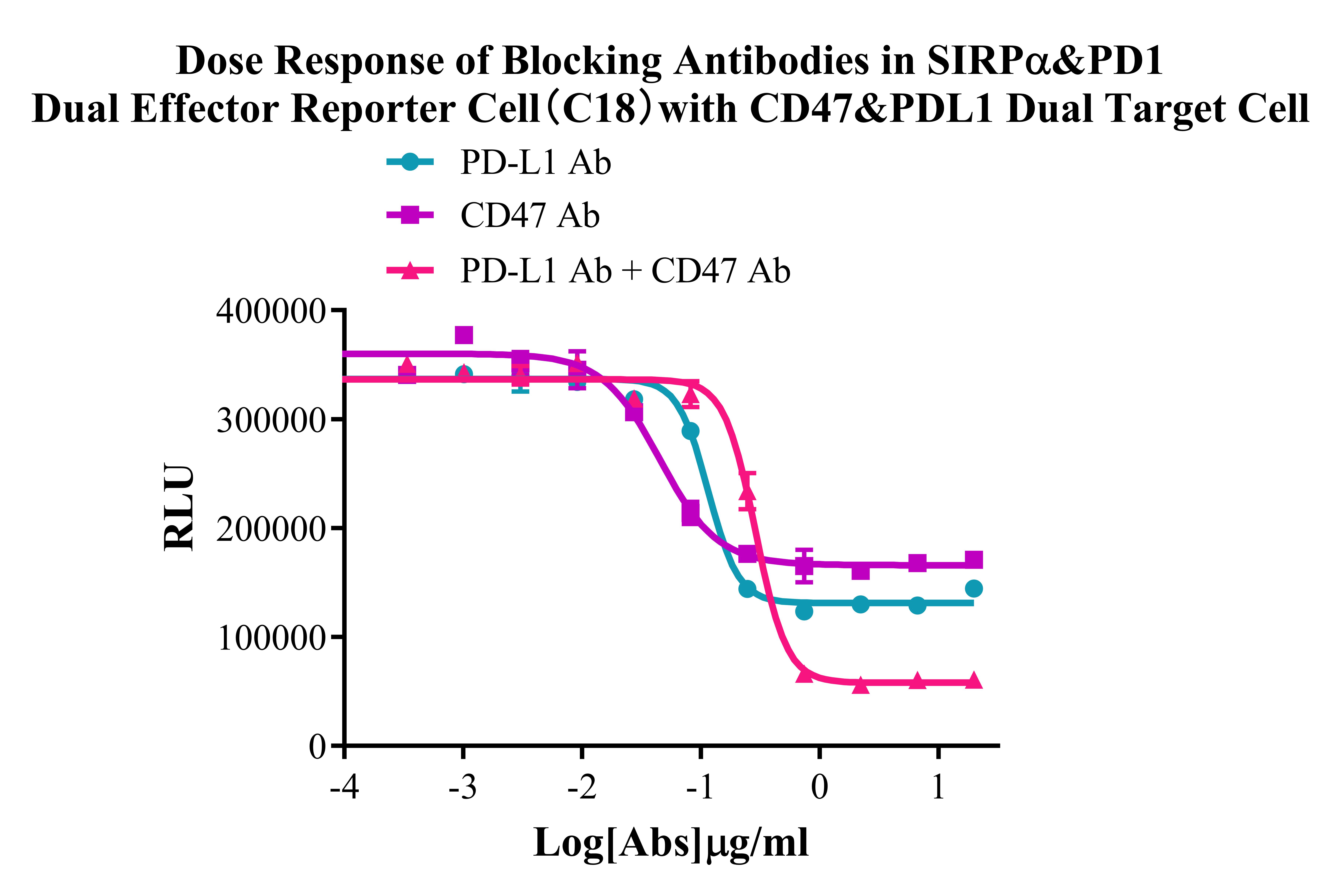 Figure 2. Dose Response of Blocking Antibodies in SIRPα&PD1 Dual Effector Reporter Cell(C18) with CD47&PDL1 Dual Target Cell.