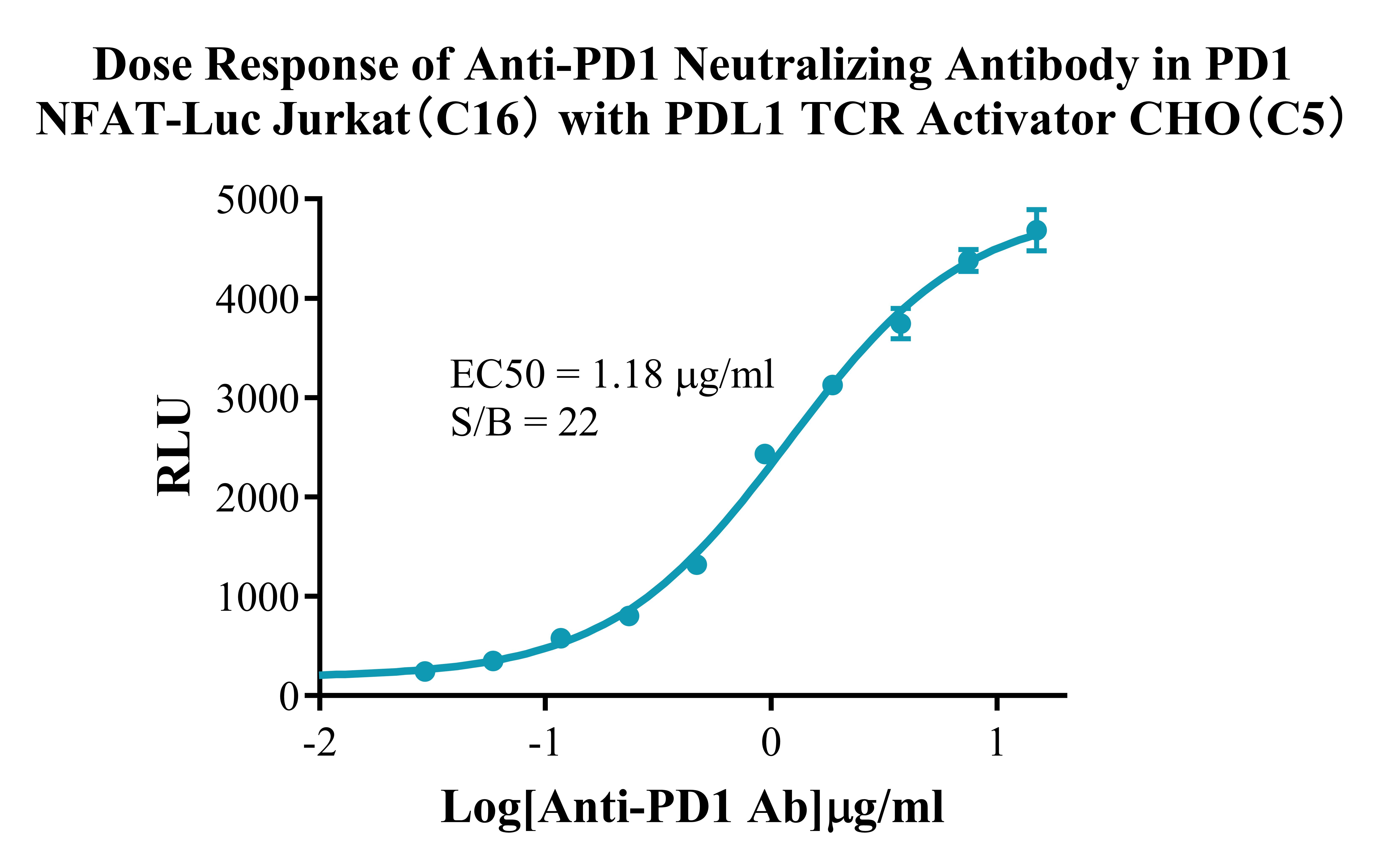 Figure 3. Detect Luciferase assay by Ultra Luciferase Detection Kit CBPH0001(we strongly suggest to purchase from Cobioer).Dose response of Anti-PD-1 Neutralizing Antibody in PD1 NFAT-Luc Jurkat(C16) with  PDL1 TCR Activator CHO (C5).