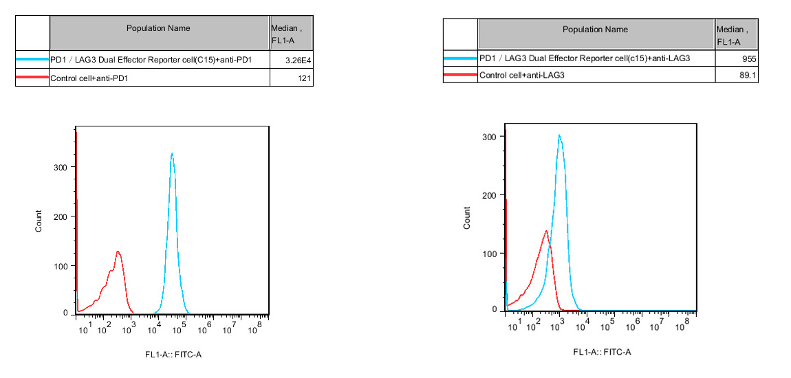Figure 2. PD-1/LAG3 Dual Effector Reporter Cell constitutively expressing PD1 and LAG3.