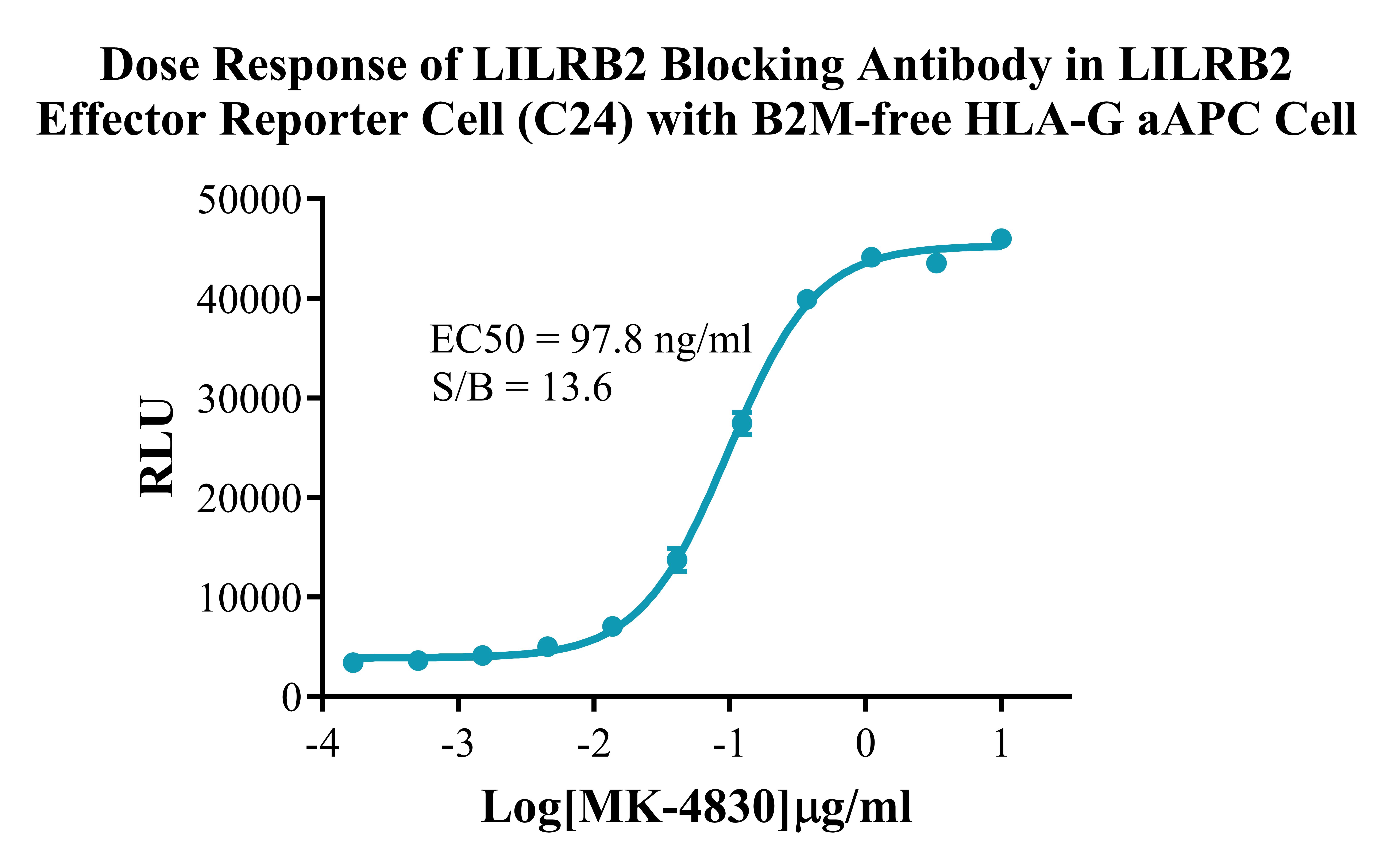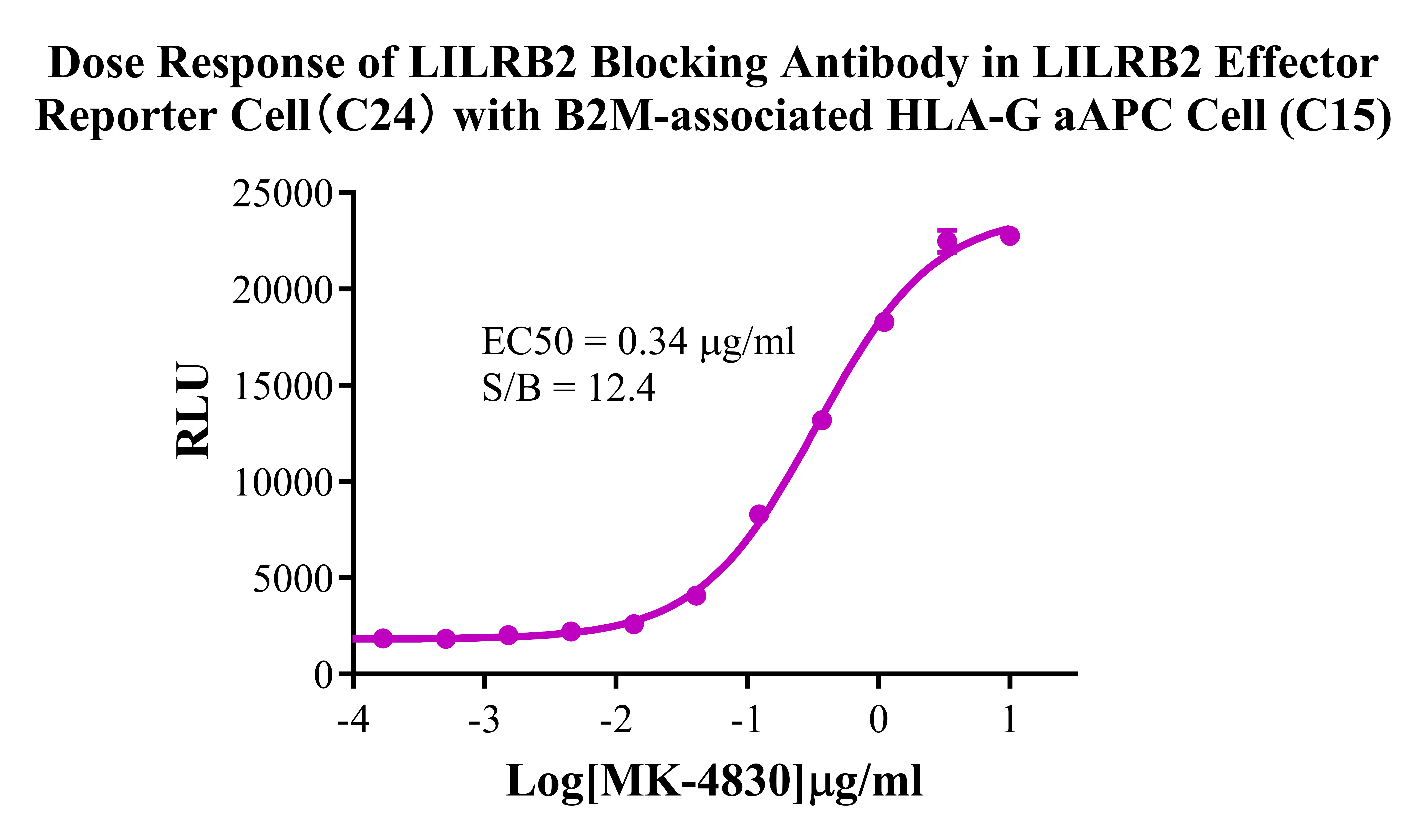 Figure 4. Dose Response of LILRB2 Blocking Antibody in LILRB2 Effector Reporter Cell (C24) with B2M-free HLA-G/aAPC Cell.