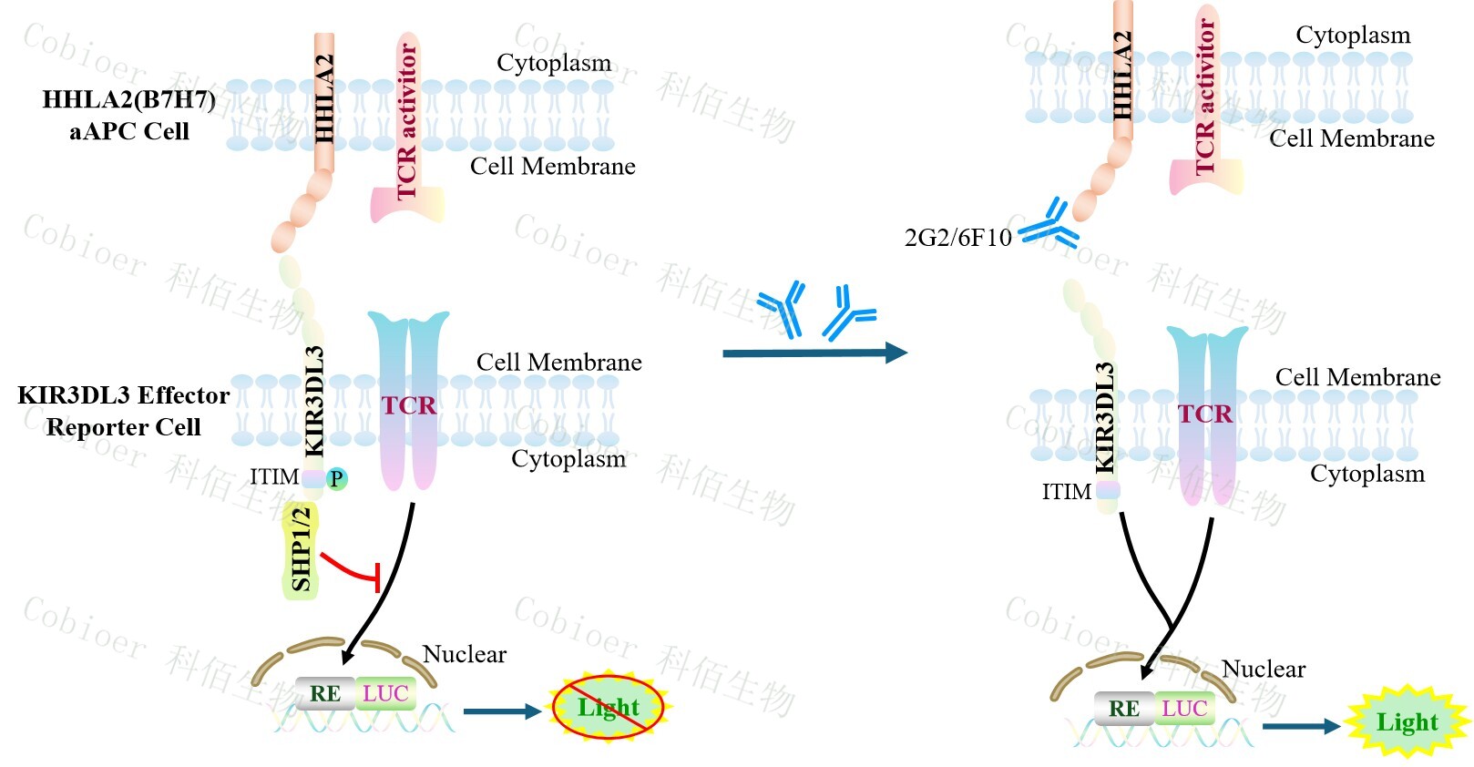 KIR3DL3 Effector Reporter Cell 報告基因藥靶模型很好的模擬了體內 KIR3DL3 的信號 轉導過程,原理見下圖所示。![]() Figure 1. KIR3DL3 Effector Reporter Cell 模型原理圖 |