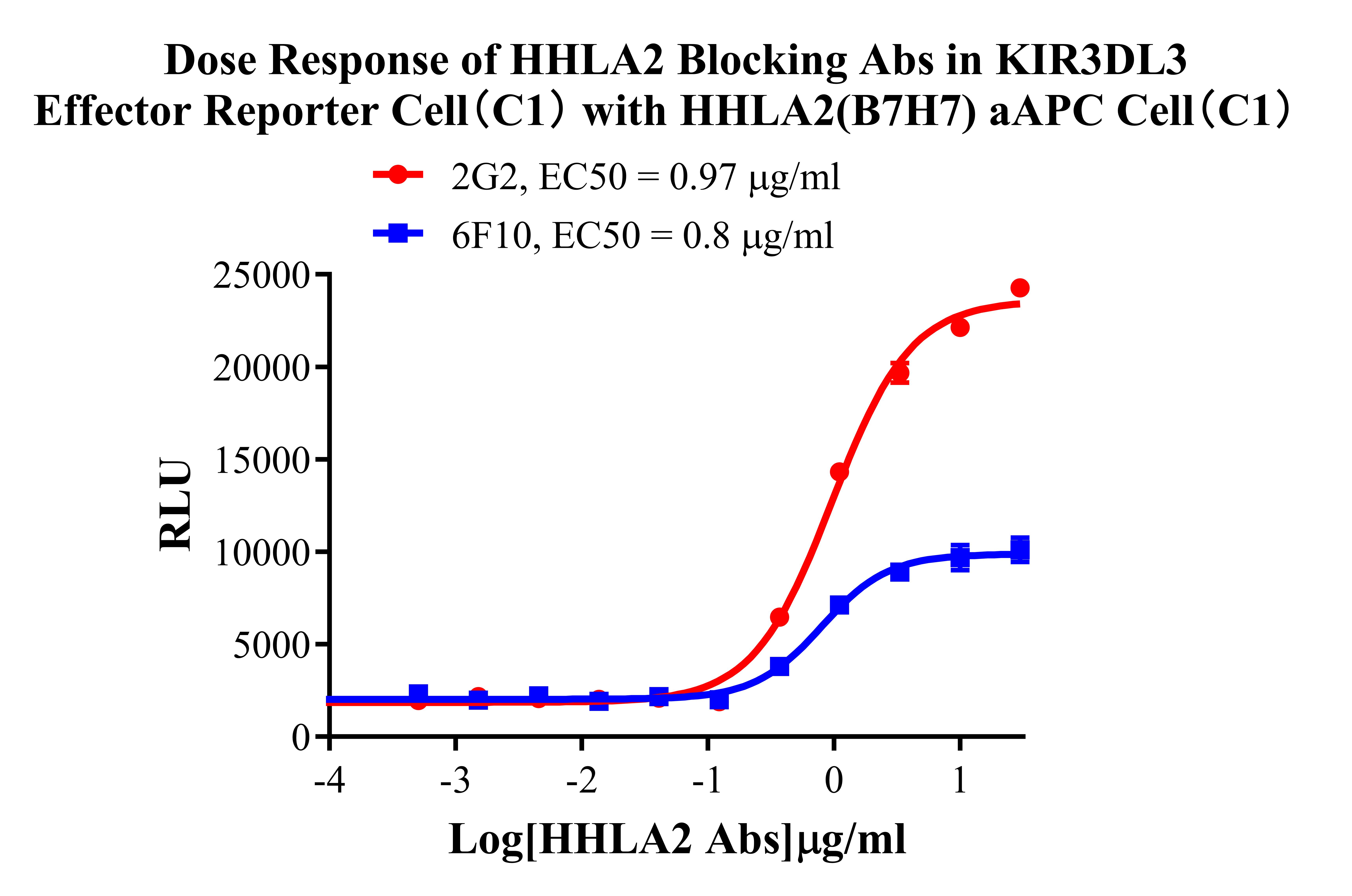 Figure 3. Dose Response of HHLA2 Blocking Abs in KIR3DL3 Effector Reporter Cell (C1) with HHLA2(B7H7) aAPC Cell(C1). |