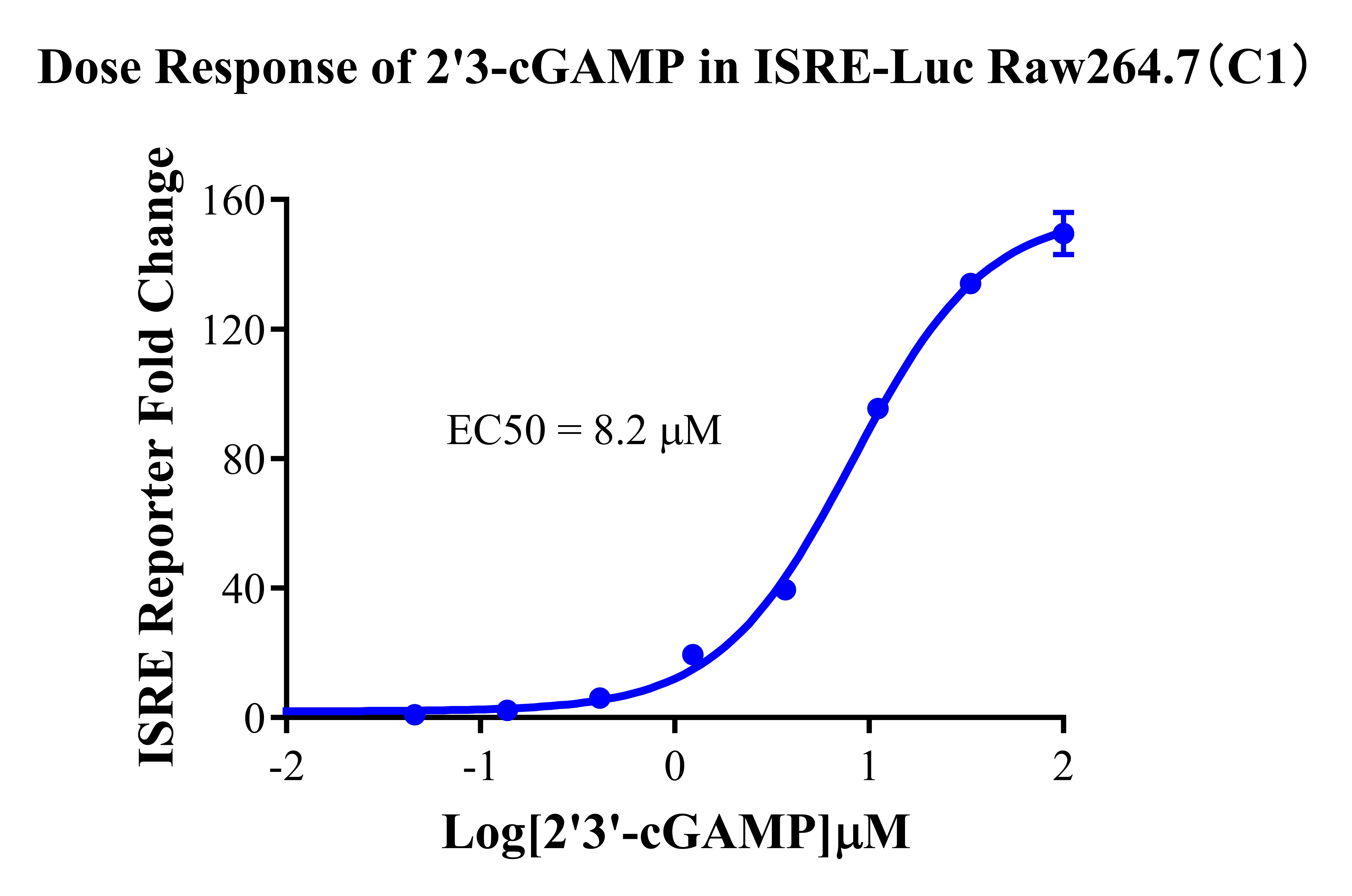 Figure 2. Detect Luciferase assay by Ultra Luciferase Detection Kit CBPH0001(we strongly suggest to purchase from Cobioer).  Dose Response of 2'3-cGAMP in ISRE-Luc RAW264.7(C1).