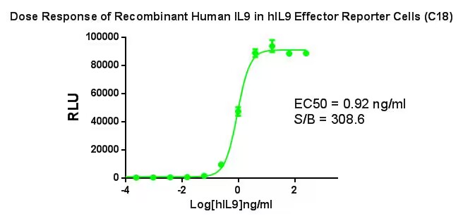 Figure 3. Dose Response of Recombinant Human IL9 in hIL9 Effector Reporter Cells (C18) |
