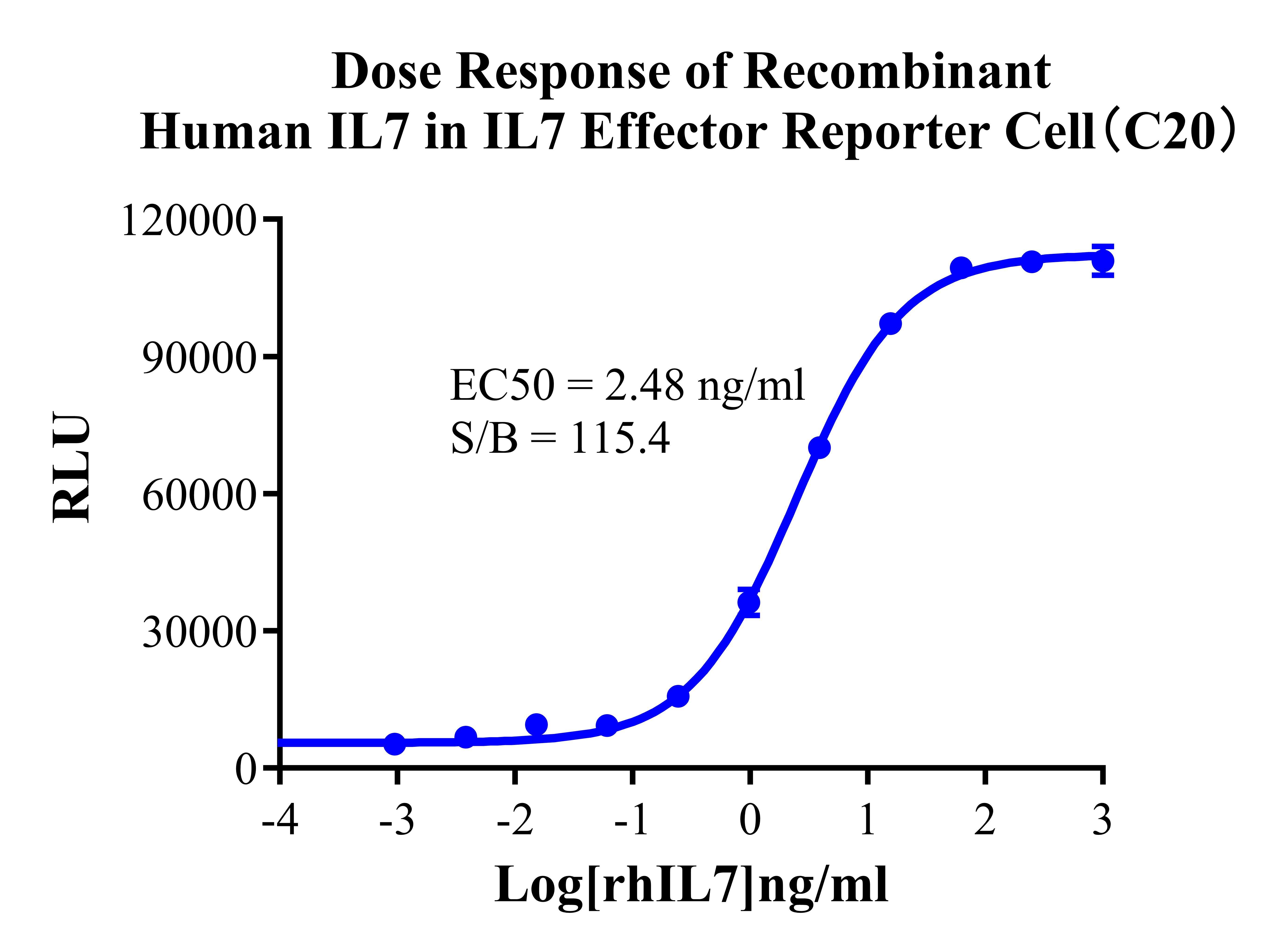 Figure 3. Dose Response of Recombinant Human IL7 in IL7 Effector Reporter Cell(C20). |