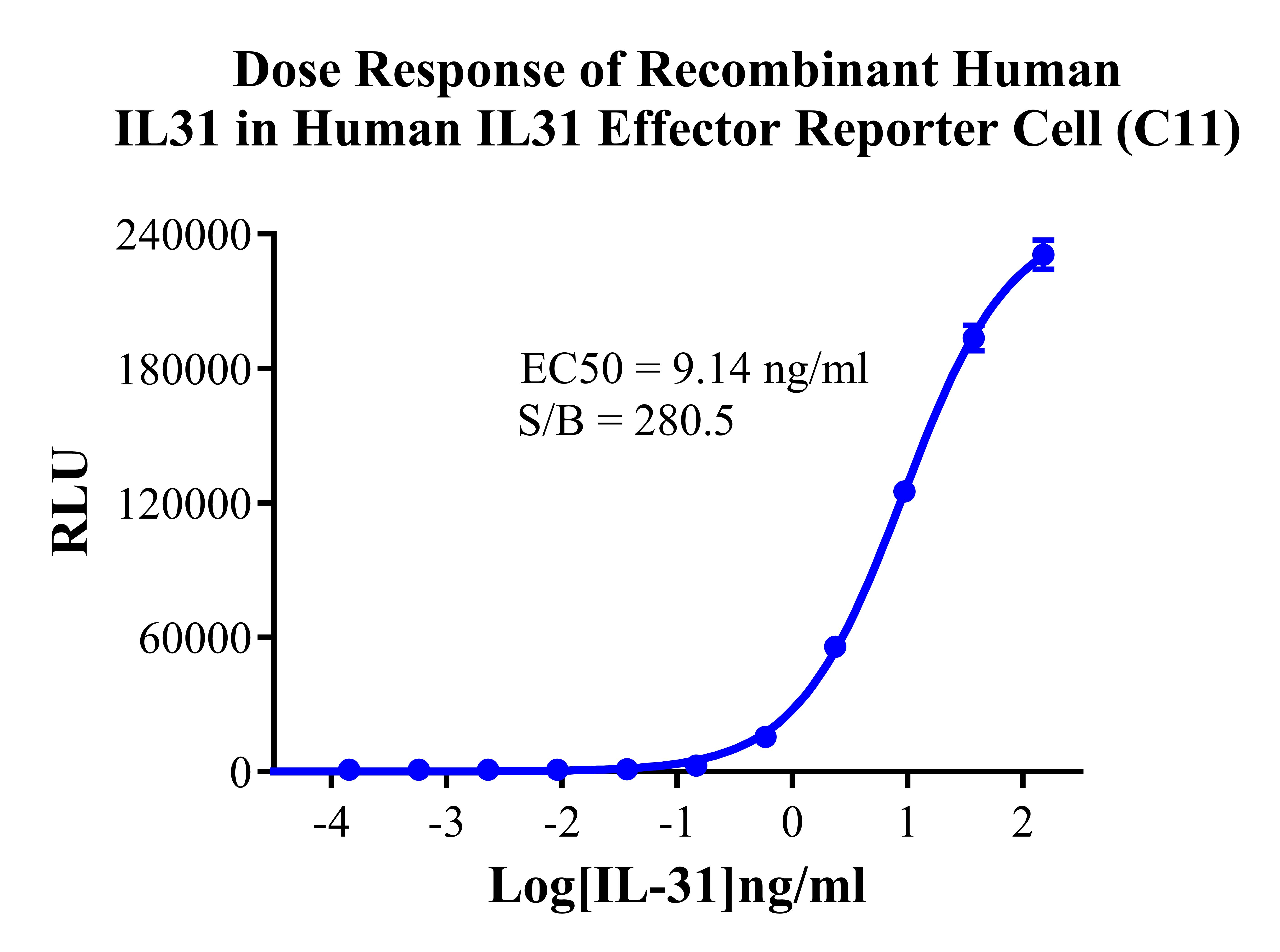 Figure 3. Dose Response of Recombinant Human IL31 in Human IL31 Effector Reporter Cell(C11). |