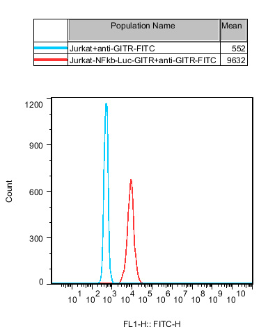 Figure 2. Recombinant GITR/NFκB-Luc/Jurkat stably expressing GITR.