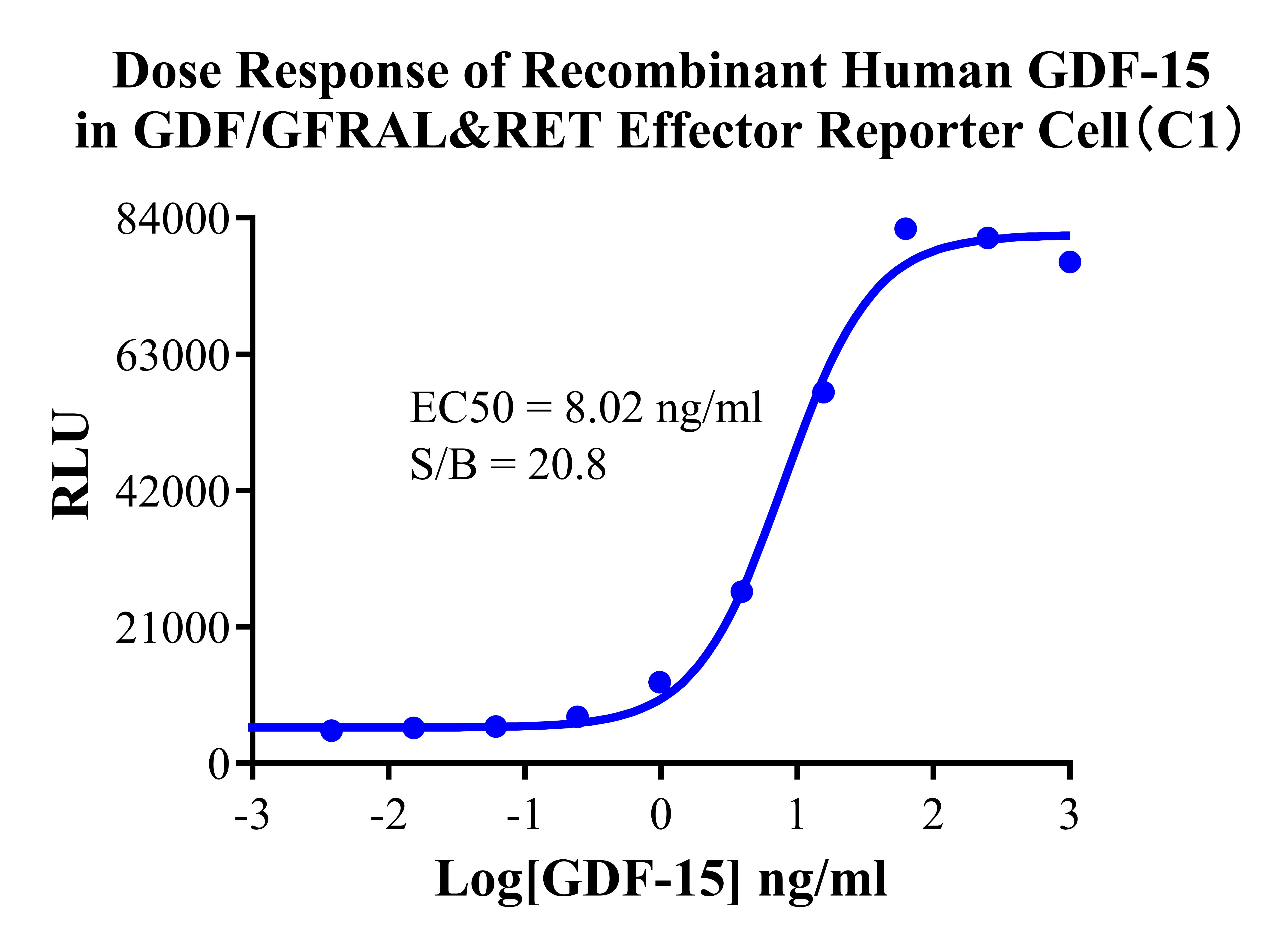 Figure 4.Dose Response of Recombinant Human GDF-15 in GDF/GFRAL&RET Effector Reporter Cells (C1).