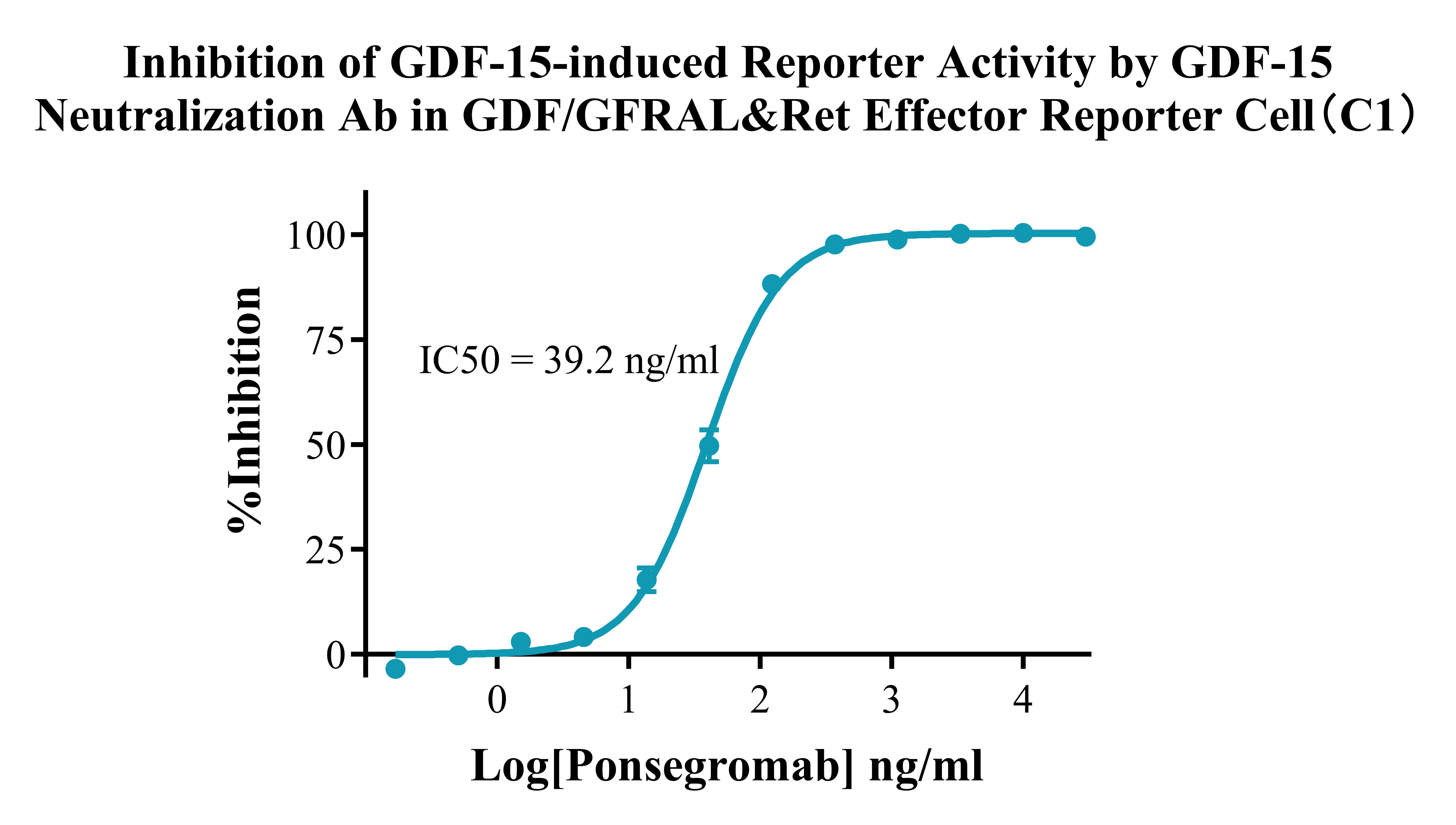 Figure 5.Inhibition of GDF-15-induced Reporter Activity by GDF-15 Neutralization Ab in GDF/GFRAL&Ret Effector Reporter Cell (C1).