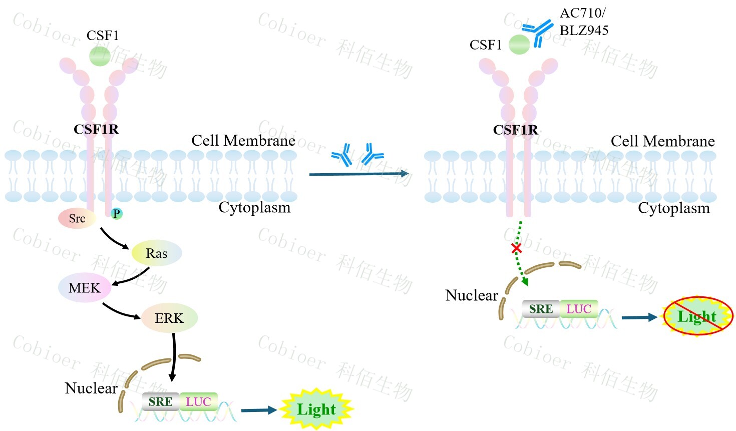 Figure 1. CSF1R SRE-Luc HEK293 細胞模型原理圖
