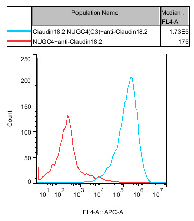 Claudin18.2 NUGC4 細(xì)胞,在 NUGC4 細(xì)胞的基礎(chǔ)上,穩(wěn)定表達(dá)人 Claudin18.2。 |