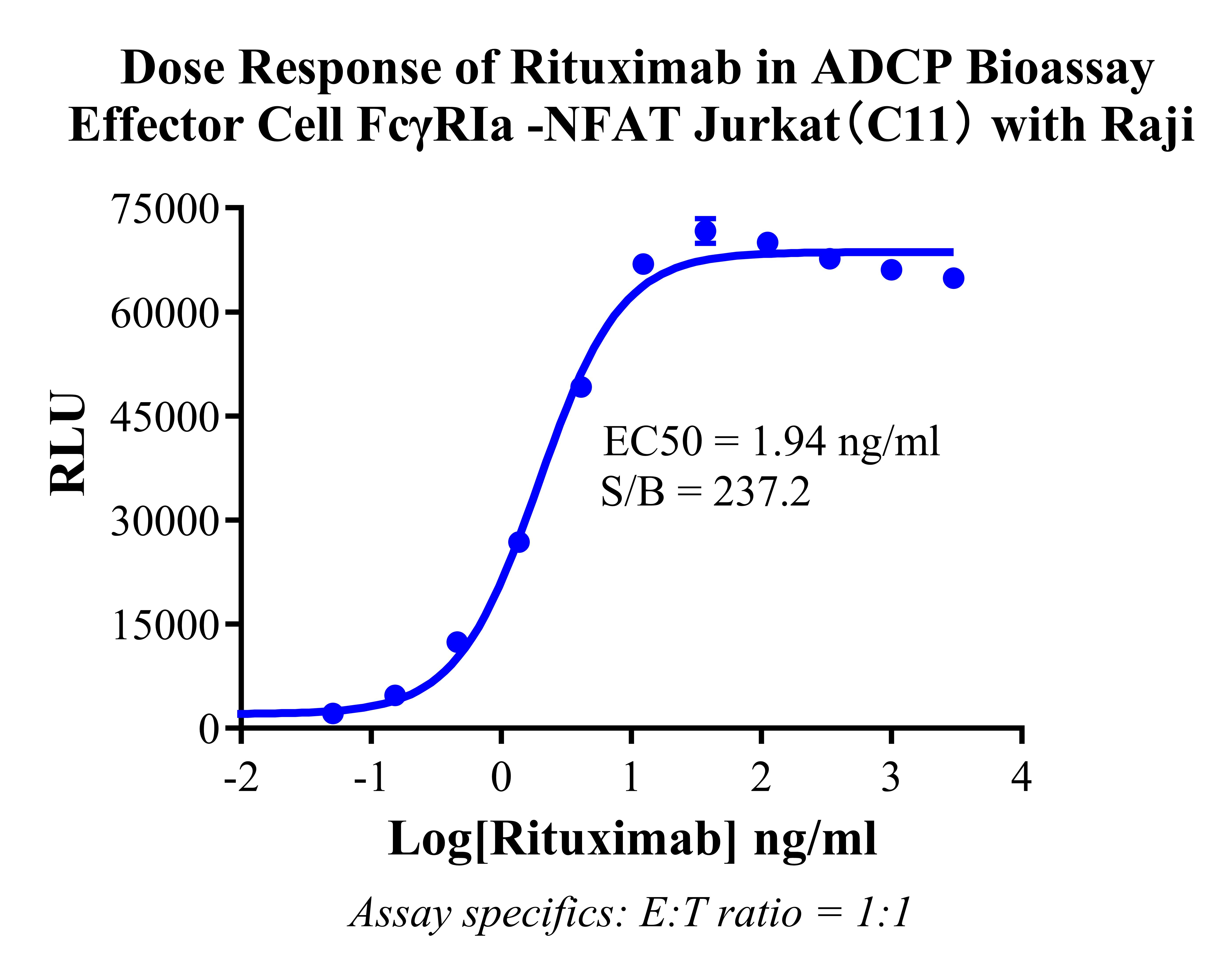 Figure 2. Dose response of Rituximab in ADCP Bioassay Effector Cell FcγRⅠa-NFAT Jurkat (C11) with Raji.