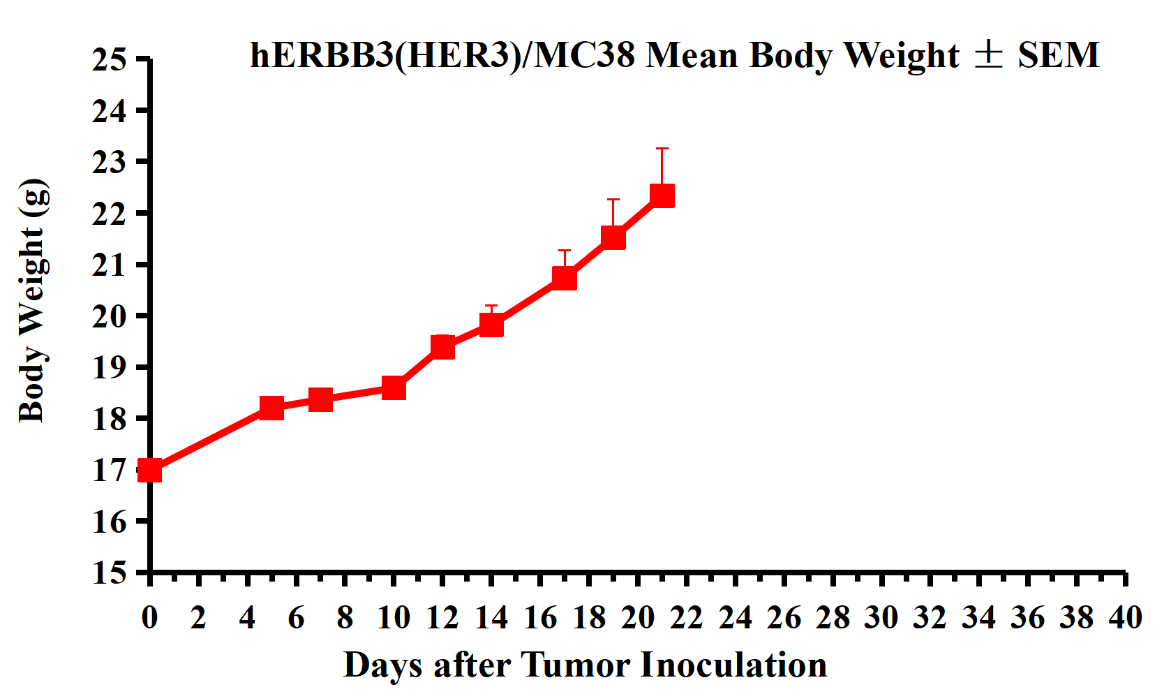 Figure 2. hERBB3(HER3)/MC38 Mean Body Weight ± SEM.