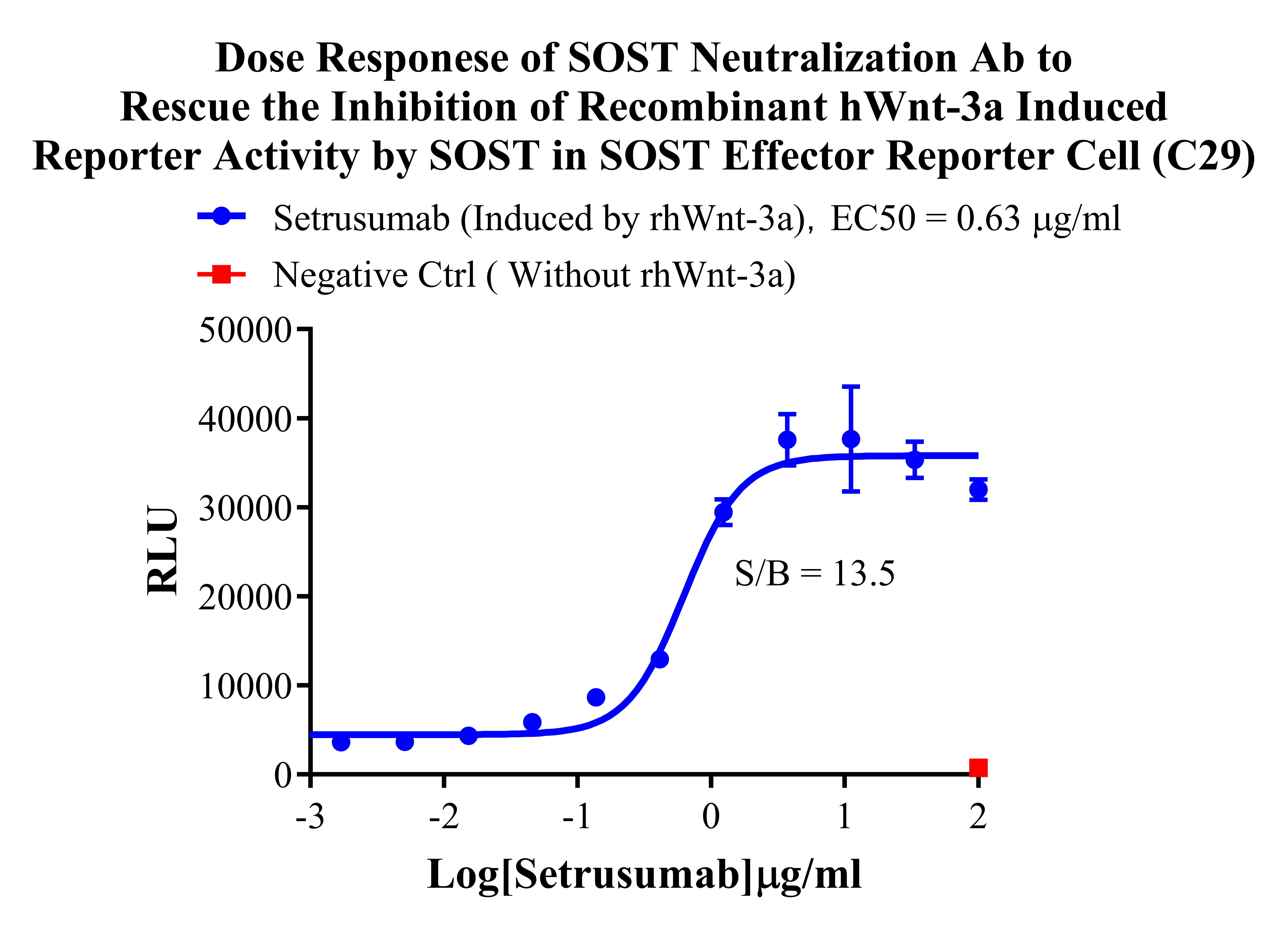 Figure 2. Dose Responese of SOST Neutralization Ab to Rescue the Inhibition of Recombinant hWnt-3a Induced Reporter Activity by SOST in SOST Effector Reporter Cell (C29).