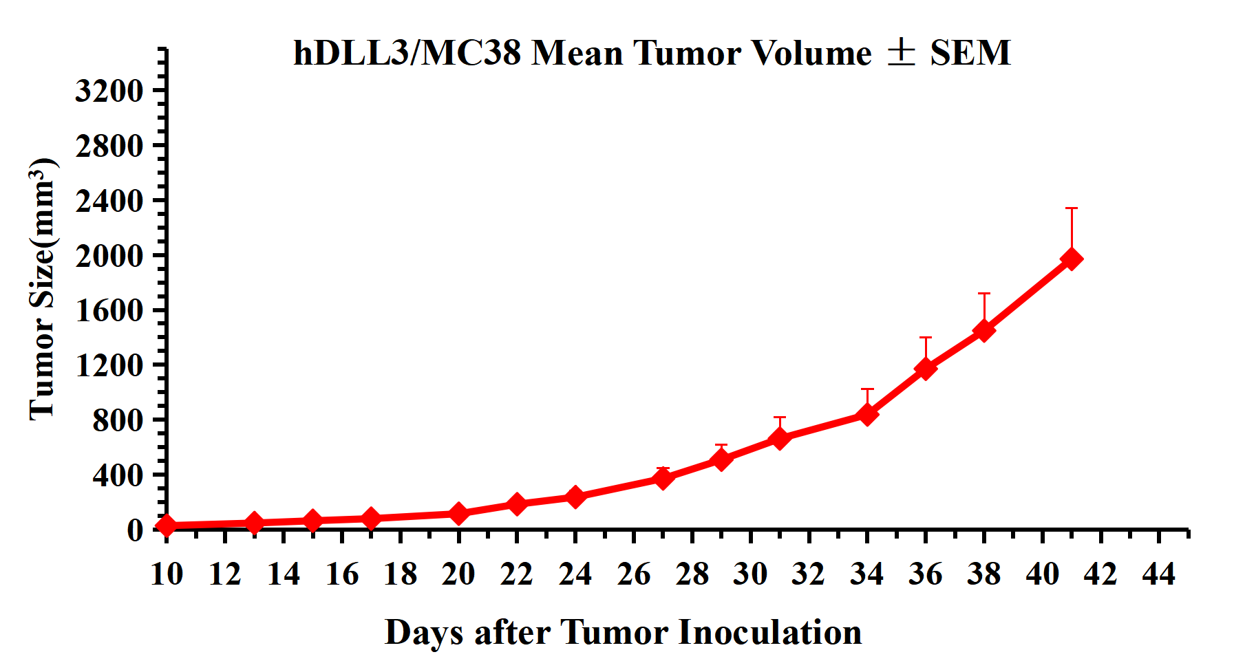Figure 3. hDLL3/MC38 Mean Tumor Volume ± SEM .