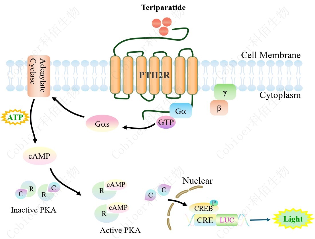 Figure 1. PTH2R CRE-Luc HEK293 細胞模型原理圖