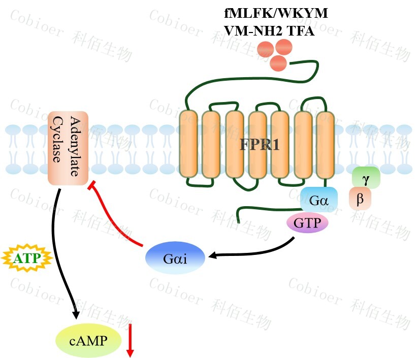 甲酰肽受體(FPR)屬于 G 蛋白偶聯(lián)受體(GPCR)家族,是趨化受體和模式識別受 體(PRR),可識別細(xì)菌和線粒體衍生的甲酰化肽。FPRs 家族包括三個成員(FPR1、 FPR2 和 FPR3),它們在多種組織和細(xì)胞類型中廣泛表達(dá),調(diào)節(jié)多種生物功能,如血管生 成、細(xì)胞增殖和防止細(xì)胞死亡。