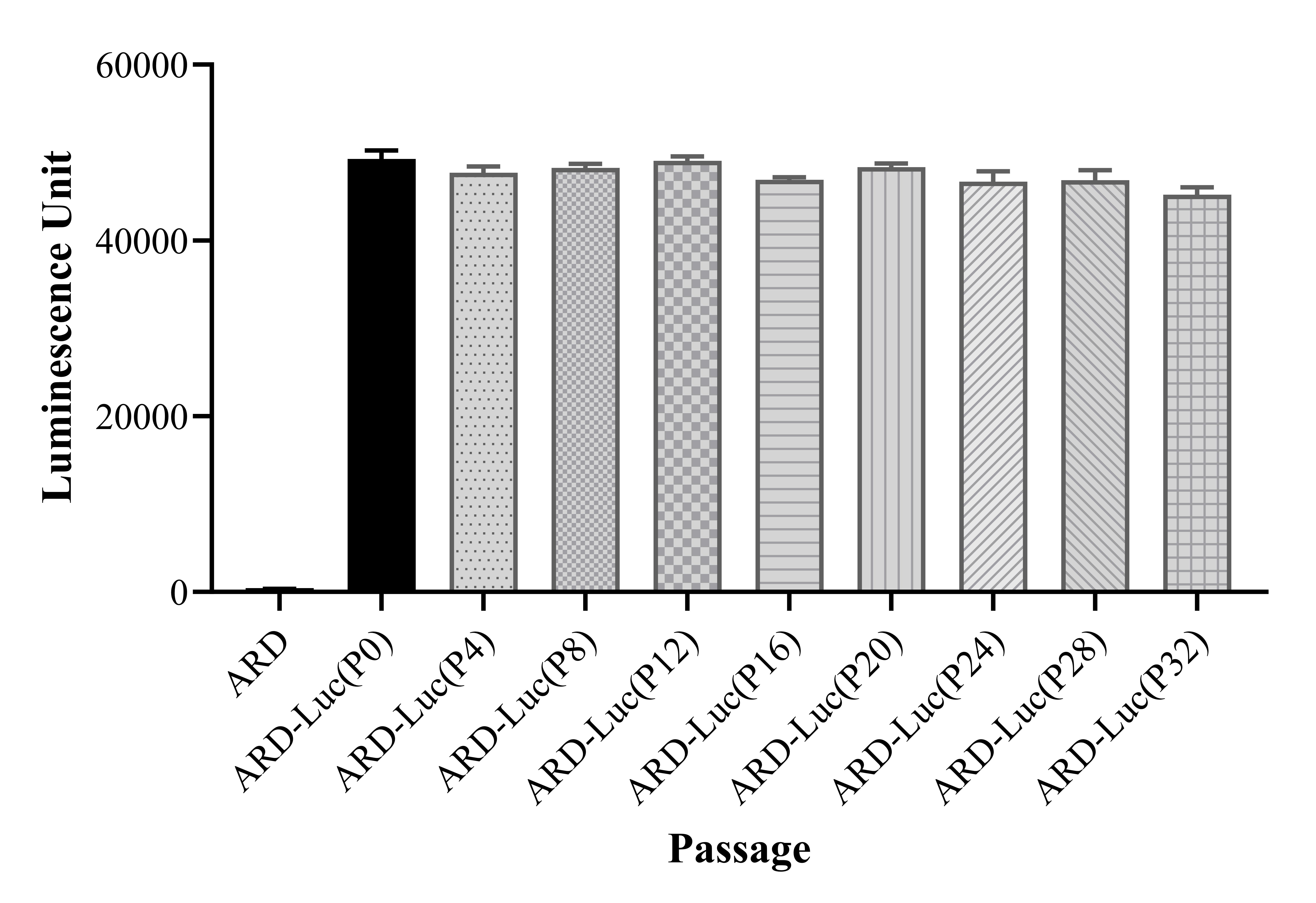 Figure 1. Stablity test results. ARD-Luc showed at least 32 passage stability with similar luminescence unit.