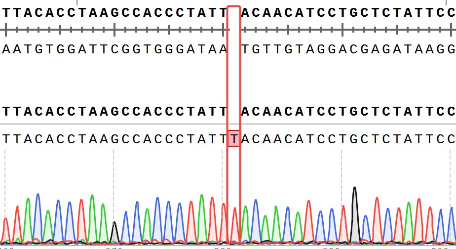 Figure 2.  ACVR2B Effector Reporter Cell 測序結(jié)果 ACVR2A(NM_001616.5): c.409_410insT/ ACVR2A:p.Y137Lfs*76