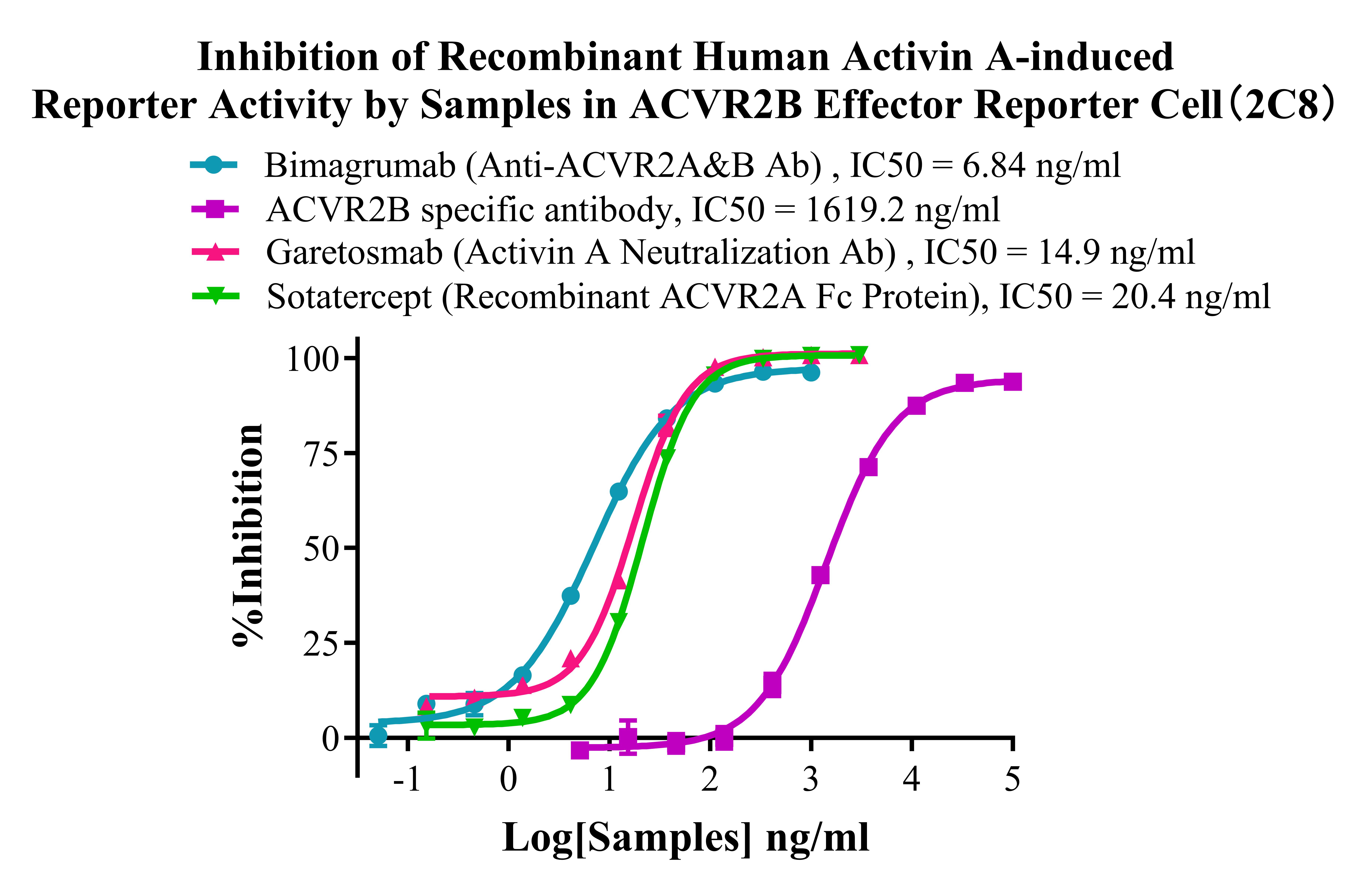 Figure 5. Inhibition of  Recombinant Human Activin A-induced Reporter Activity by Samples in ACVR2B Effector Reporter Cell (2C8).