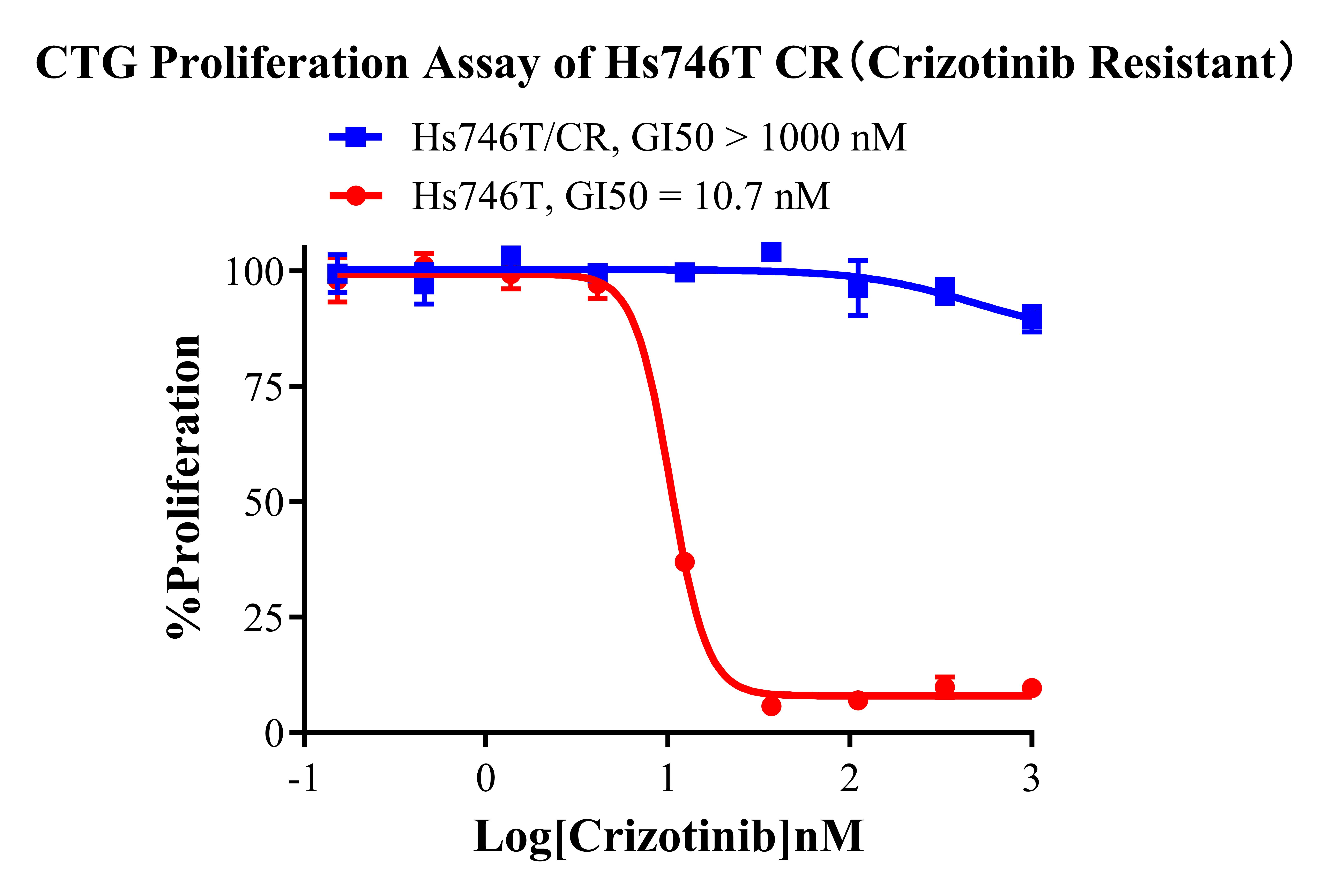 Figure 1. CTG Proliferation Assay of Hs746T CR (Crizotinib Resistant).