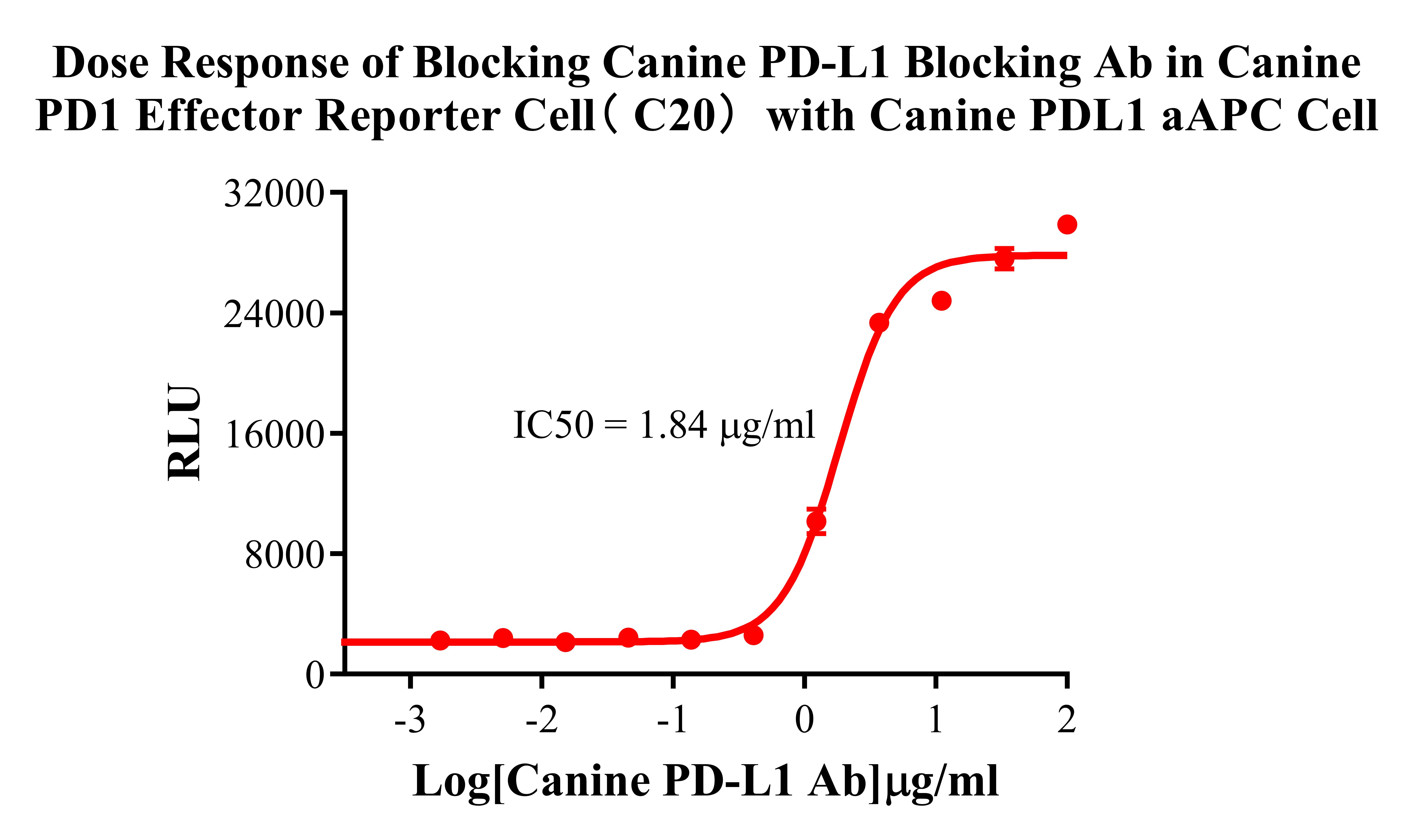Figure 3. Dose Response of Blocking Canine PD-L1 Blocking Ab in Canine PD1 Effector Reporter Cell( C20) with Canine PDLl aAPC Cell. |