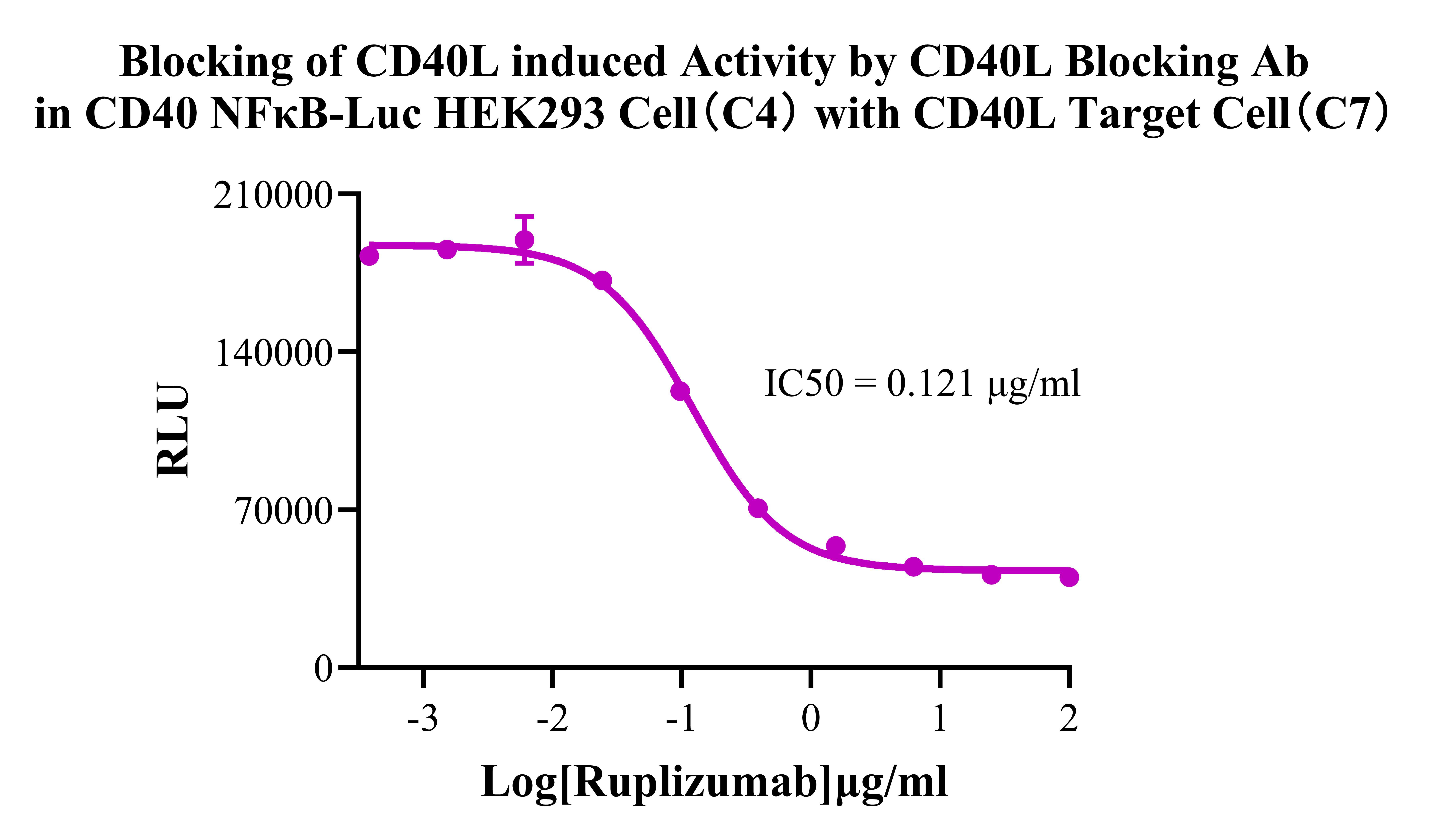 Figure 2. Blocking of CD40L induced Activity by CD40L Blocking Ab in CD40 NFκB-Luc HEK293 Cell(C4) with CD40L Target Cell(C7).