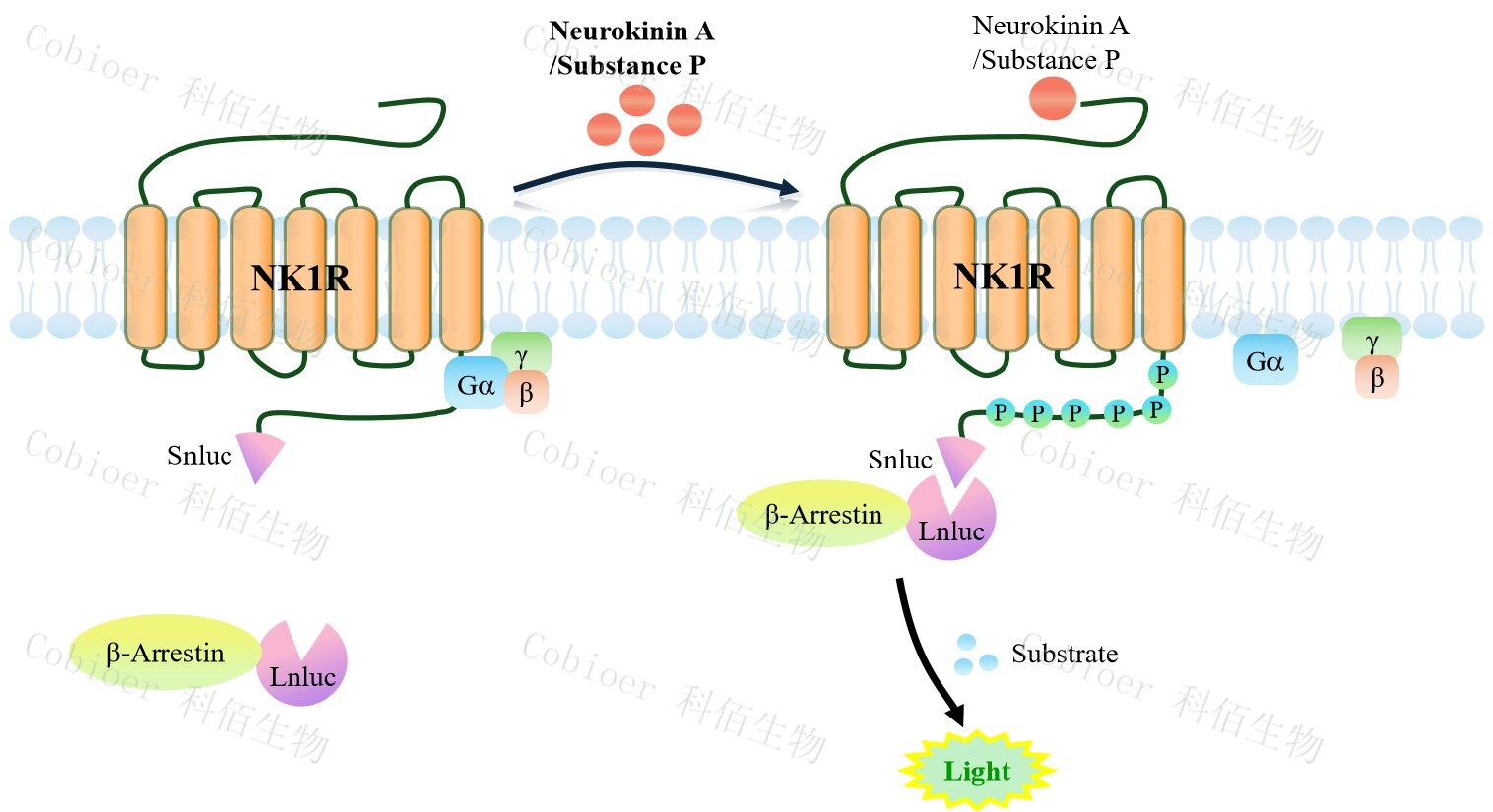 NK1R β-Arrestin CHO 細胞模型原理圖