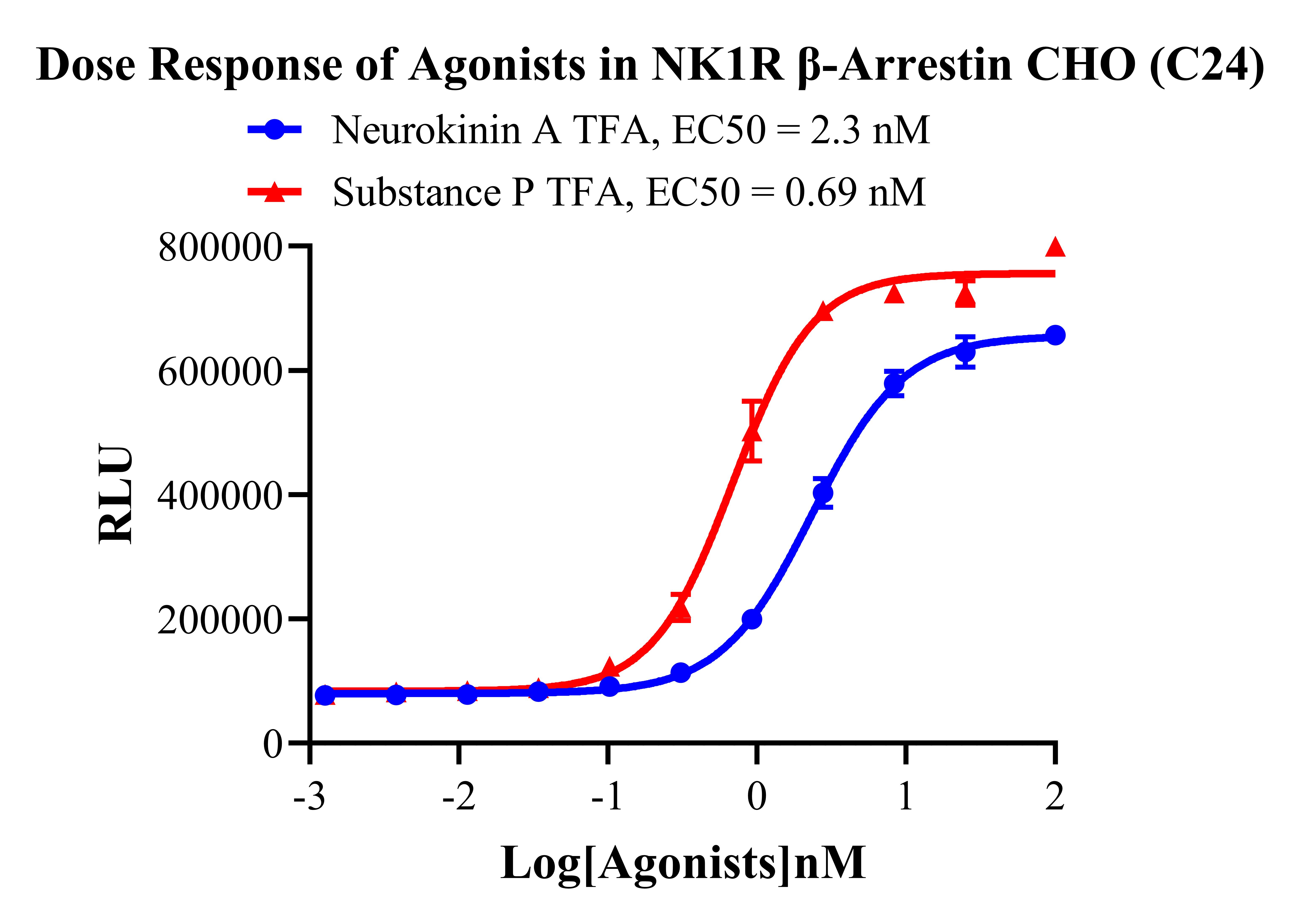 Figure 3. Dose Response of Agonists in NK1R β-Arrestin CHO (C24).