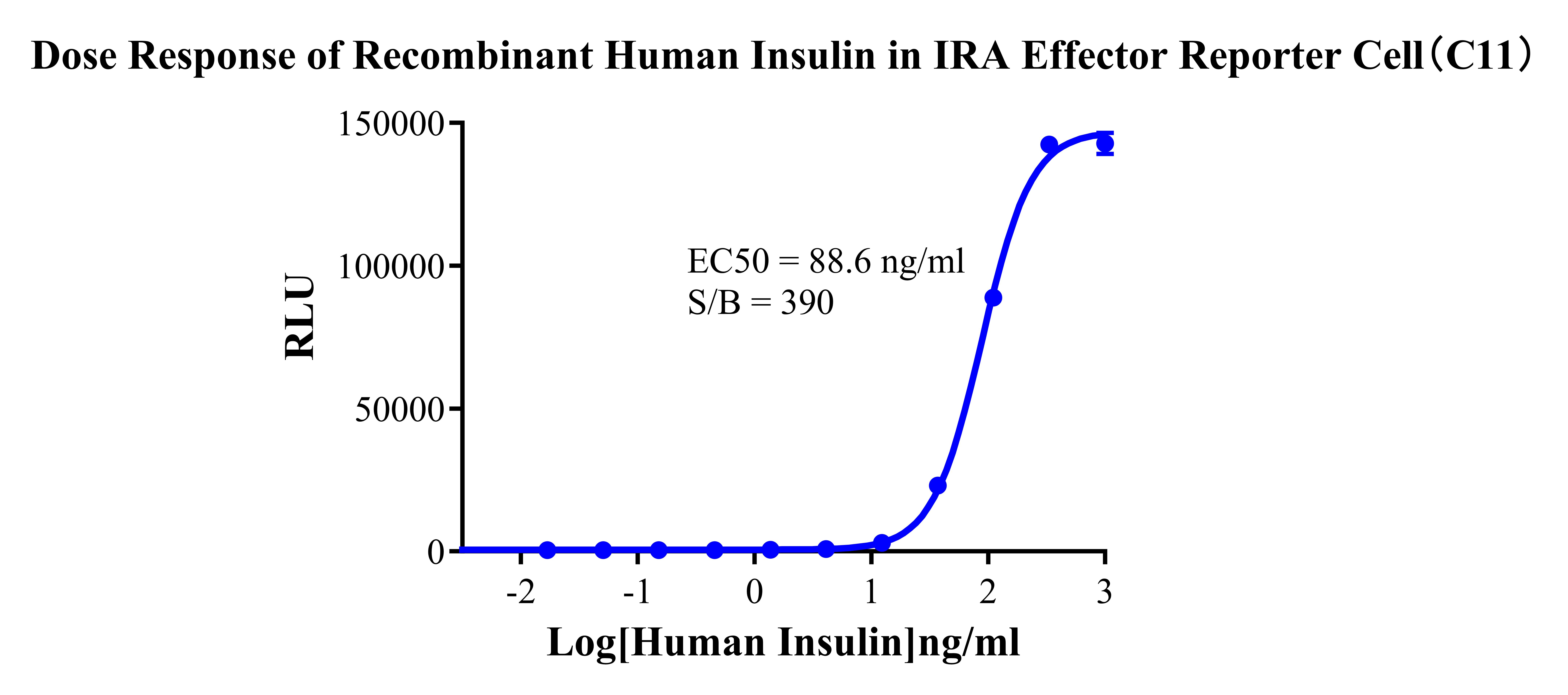 IRA Effector Reporter Cell 報(bào)告基因藥靶模型很好的模擬了體內(nèi) Insulin 的信號(hào)轉(zhuǎn)導(dǎo)過程, 原理見下圖所示。![]() Figure 1. IRA Effector Reporter Cell 細(xì)胞模型原理圖 |