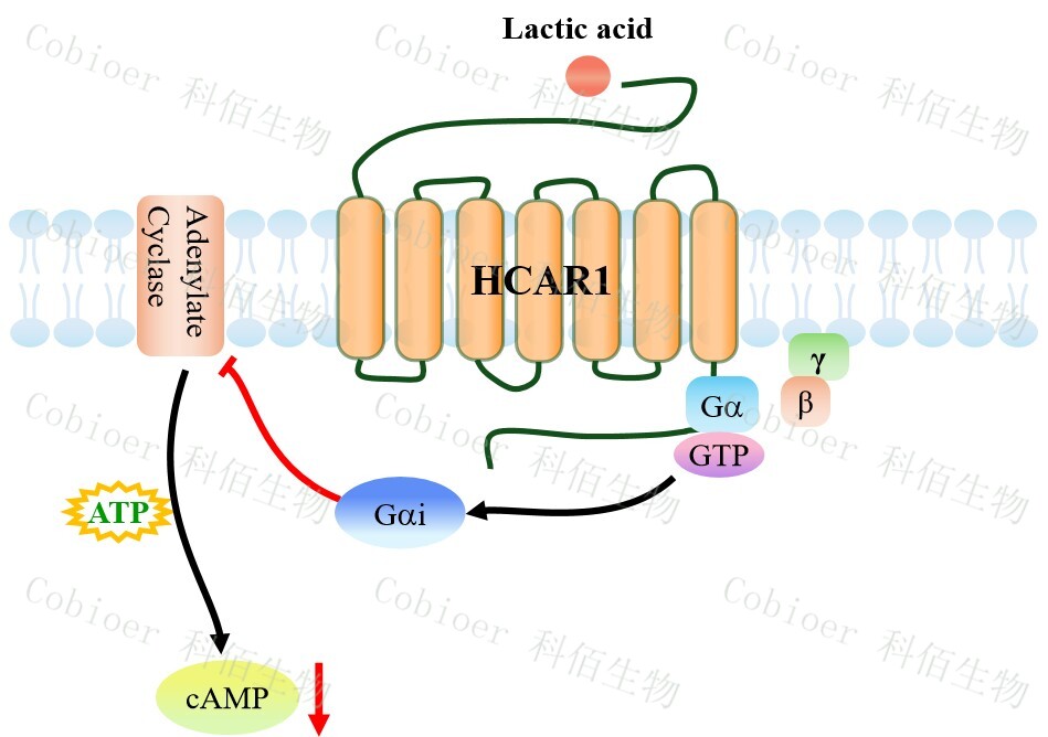 HCAR1(羥基羧酸受體 1),亦稱 GPR81,是一種分布于脂肪組織、免疫細胞(如巨 噬細胞)、神經(jīng)元及肝細胞的 G 蛋白偶聯(lián)受體(GPCR),屬于羥基羧酸受體亞家族,其 內(nèi)源性配體為乳酸(L-lactate);該受體通過偶聯(lián) Gi/o 蛋白,抑制腺苷酸環(huán)化酶,降低 cAMP 水平,從而抑制 PKA 信號,同時激活β-arrestin 通路。其核心功能包括,在脂肪組織 中抑制脂解、促進脂質(zhì)儲存,在免疫細胞中調(diào)控炎癥反應(yīng)(如抑制促炎因子釋放、促進 M2 型巨噬細胞極化),在神經(jīng)系統(tǒng)中參與乳酸介導(dǎo)的神經(jīng)保護及能量穩(wěn)態(tài)調(diào)節(jié);其信號 異常與代謝性疾?。ㄈ绶逝?、胰島素抵抗)、神經(jīng)炎癥疾?。ǘ喟l(fā)性硬化、腦缺血)及腫 瘤微環(huán)境重塑(乳酸介導(dǎo)的免疫逃逸)密切相關(guān),尤其在腫瘤組織中高表達的 HCAR1 可 通過抑制抗腫瘤免疫應(yīng)答促進進展,成為代謝-免疫交叉治療的潛在靶點。