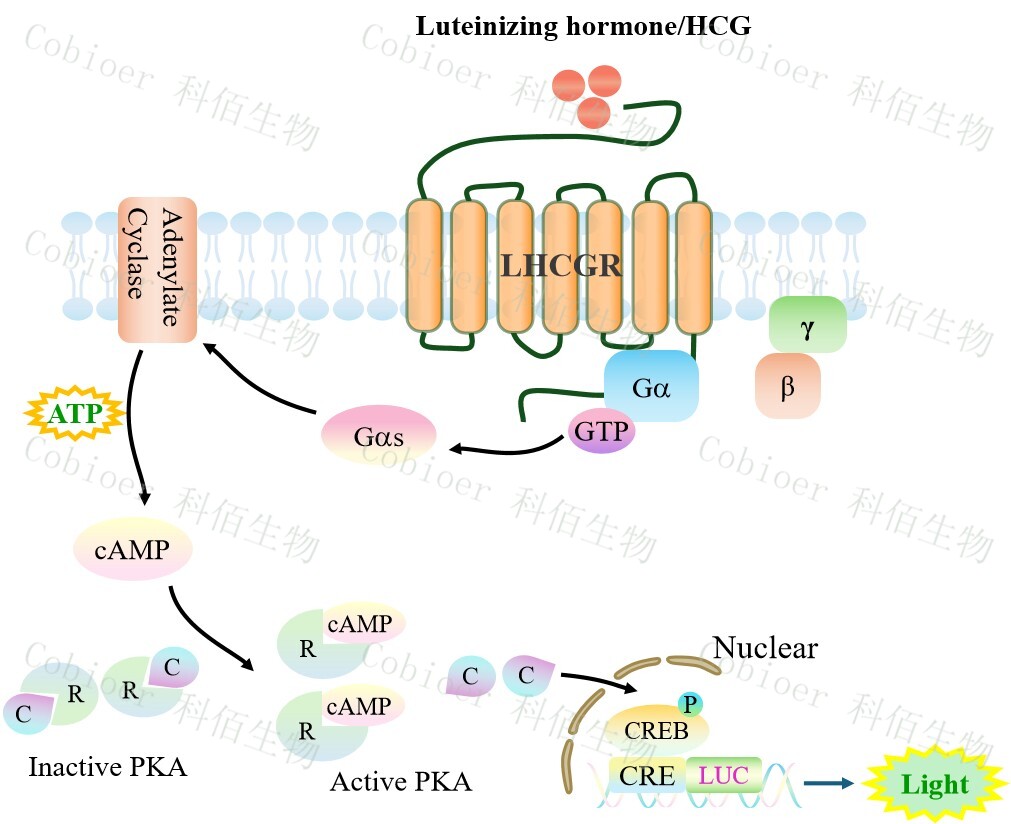Figure 1. LHCGR CRE-Luc HEK293 細(xì)胞模型原理圖