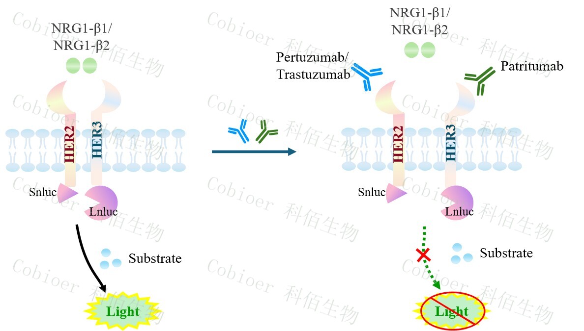 ERBB2&ERBB3 Dimerization CHO 報(bào)告基因藥靶模型很好的模擬了體內(nèi) ERBB2&ERBB3 的信號轉(zhuǎn)導(dǎo)過程,原理見圖所示。![]() Figure 1. ERBB2&ERBB3 Dimerization CHO 細(xì)胞模型原理圖 |