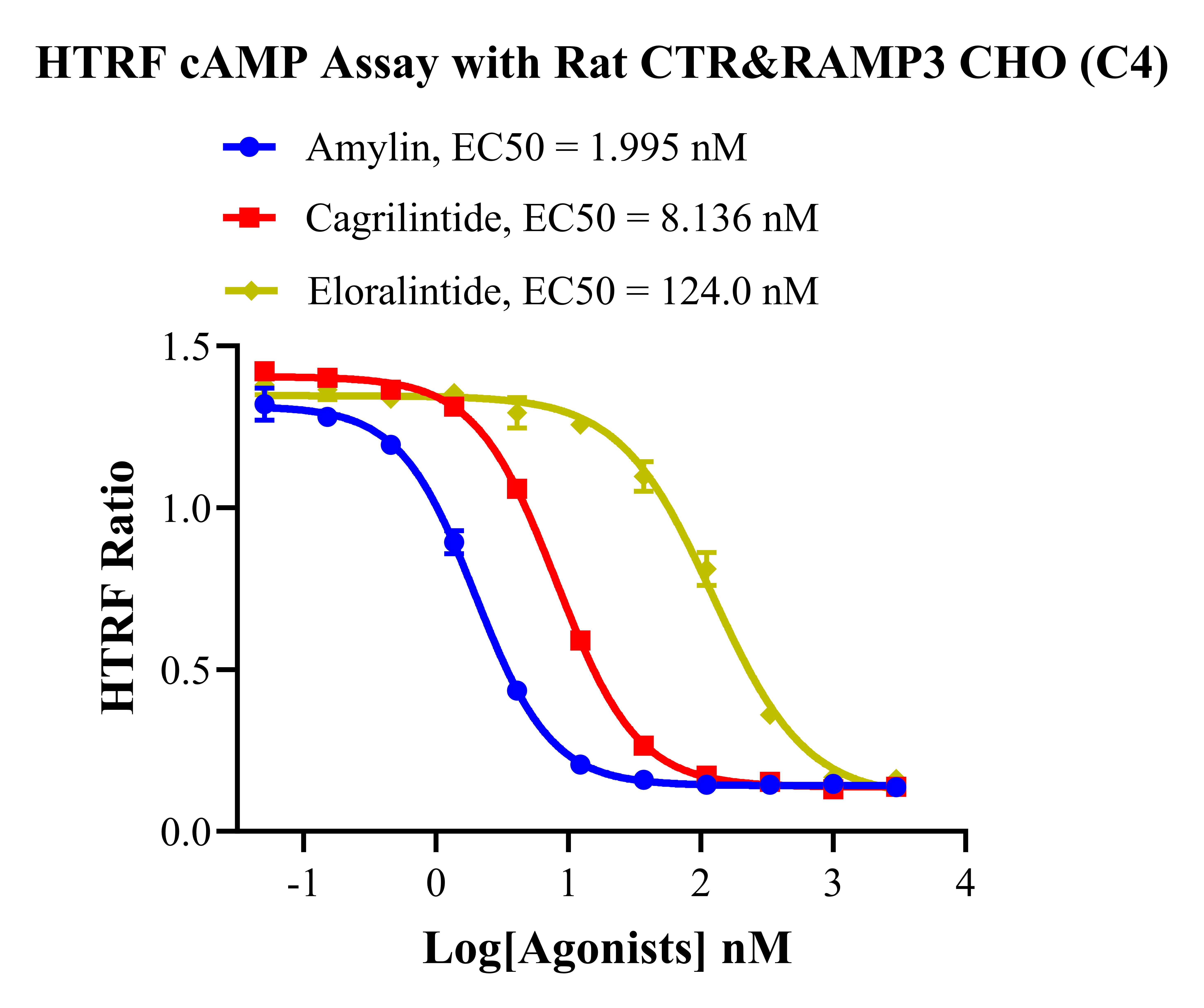 V. Representative Data![]() Figure 1.HTRF cAMP Assay with Rat CTR&RAMP3 CHO(C4). |