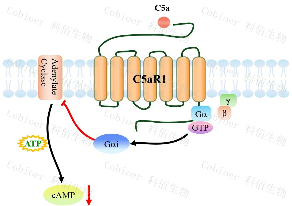 C5aR1(CD88)是補(bǔ)體過(guò)敏毒素 C5a 的高親和力 GPCR,主要表達(dá)于髓系細(xì)胞(中性 粒細(xì)胞、單核細(xì)胞、肥大細(xì)胞),通過(guò)激活 Gi/Gq 蛋白-PI3K/MAPK 通路驅(qū)動(dòng)炎癥級(jí)聯(lián)反應(yīng)。