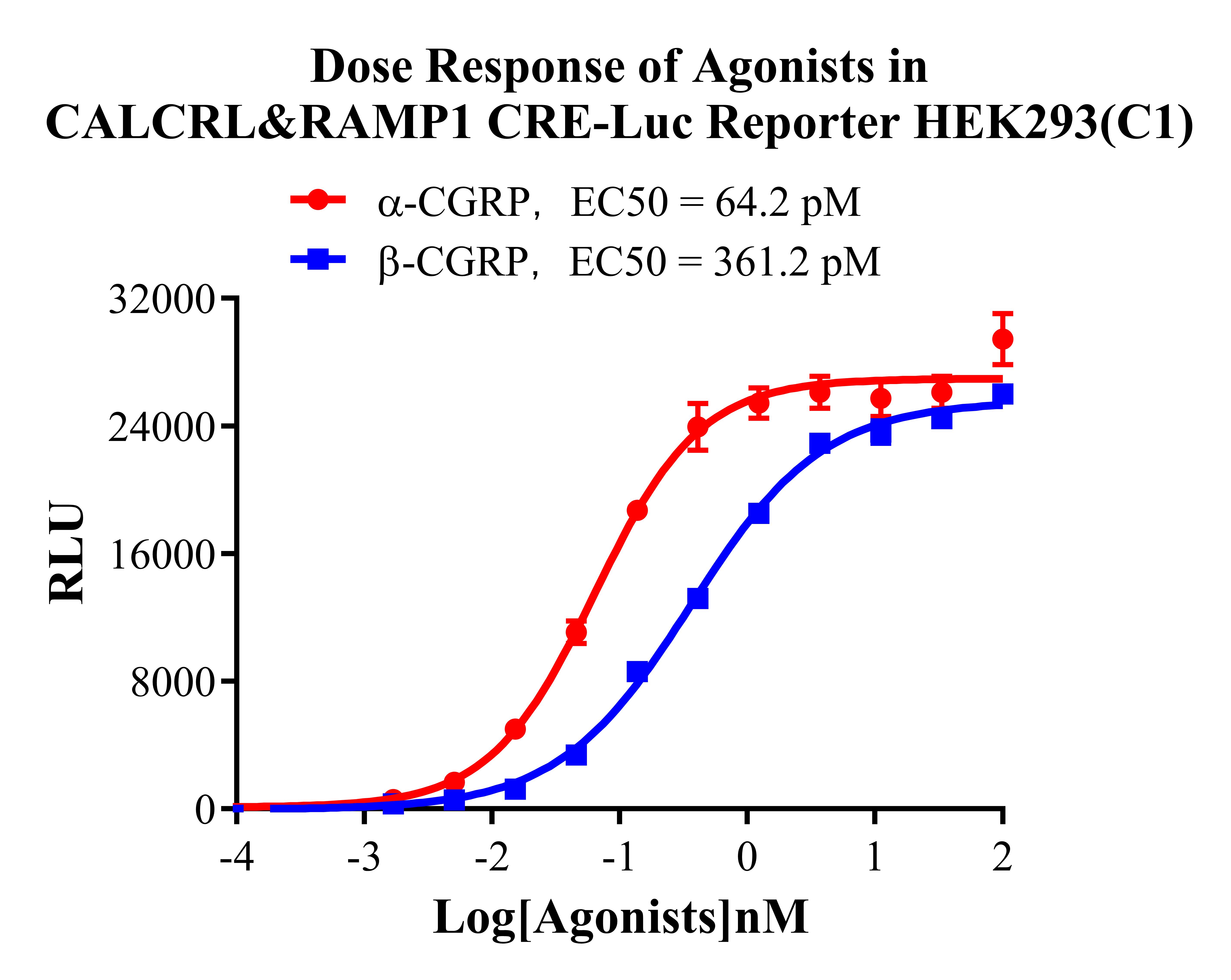Figure 2. Dose Response of Agonists in CALCRL&RAMP1 CRE Luc Reporter HEK293 Cells (C1).